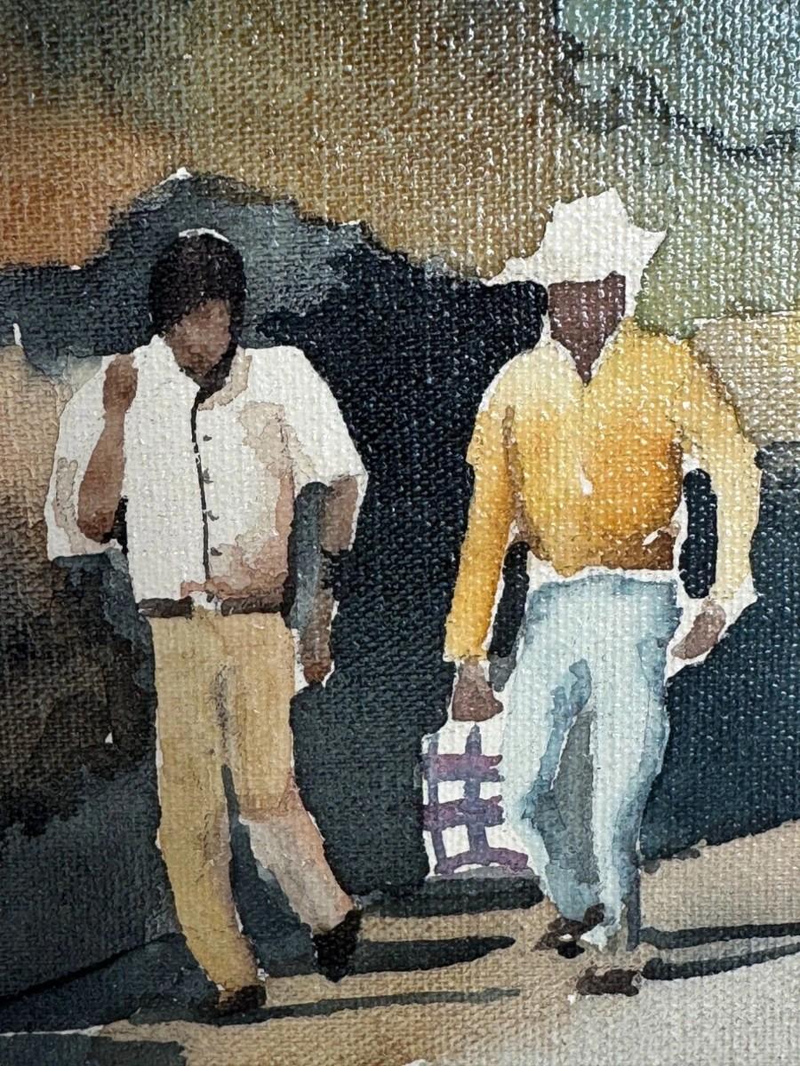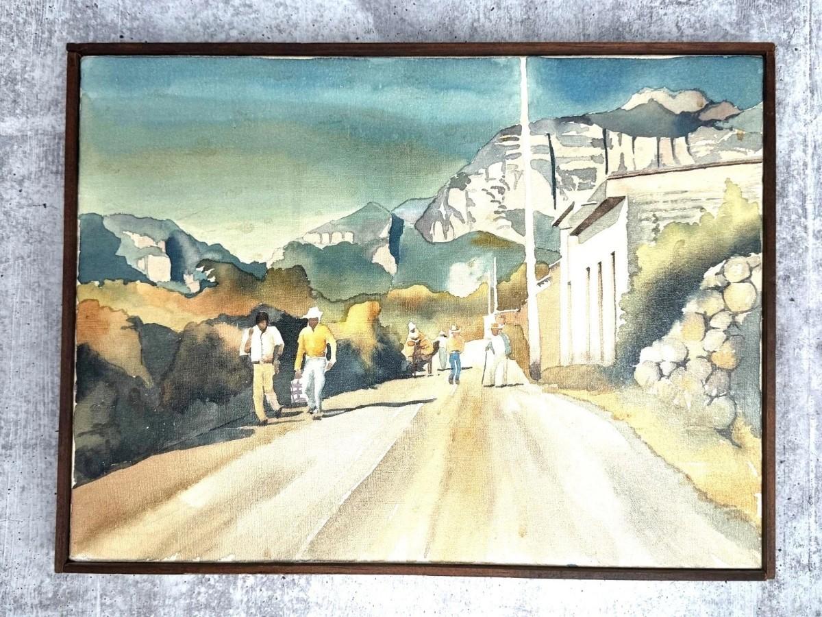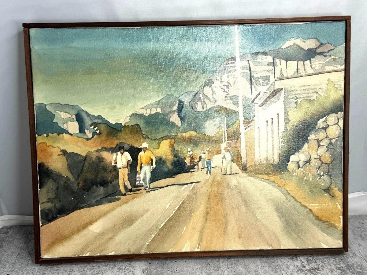 Vintage Mexican Artist Juan Ramirez Street Scene Painting 1973