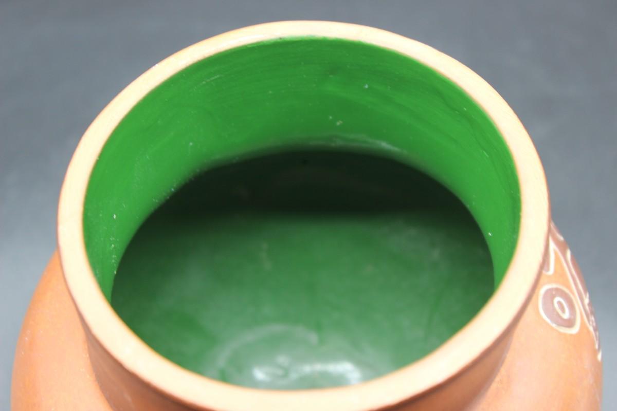 Vintage Mexican Aztec Souvenir Three Legged Pottery Piece, there is some light chipping on one of the legs, but there is no other significant damage to the piece and is in good vintage condition. The ceramic inside the pottery piece is green and is adorned with Mesoamerican symbols. Check pictures for more details and for sizing.