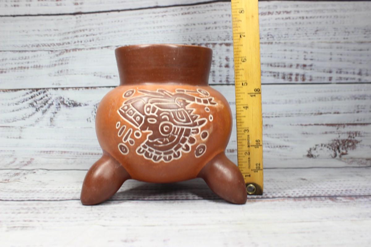 Vintage Mexican Aztec Souvenir Tripod Vessel Three Legged Pottery Piece