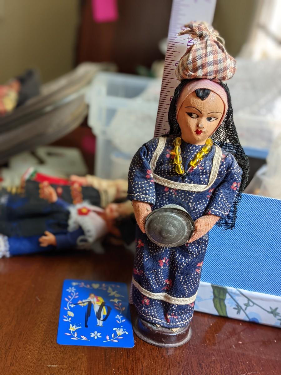 Vintage Mexican Doll with pop bottle cap stand!