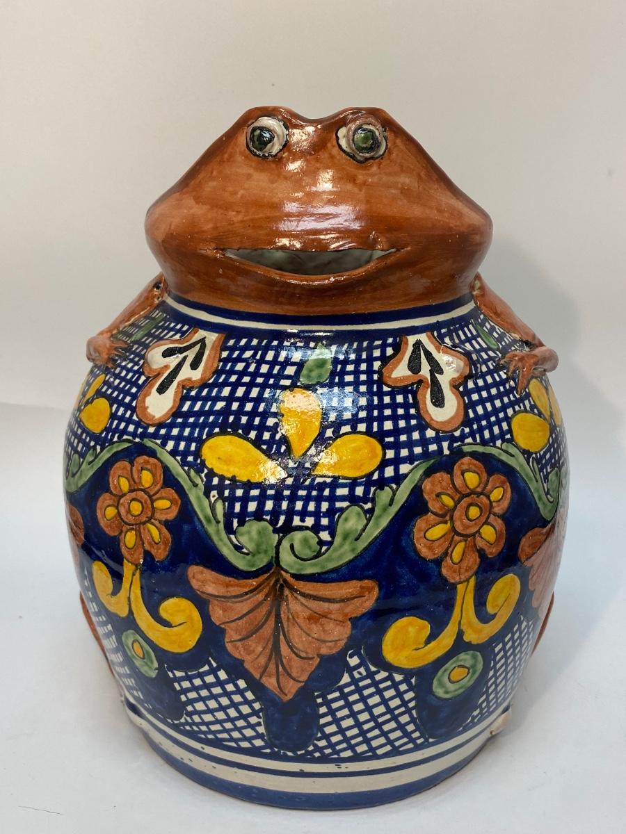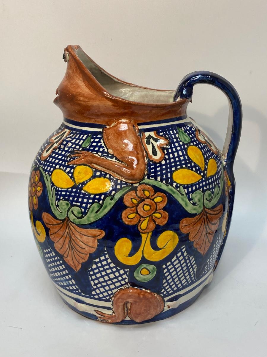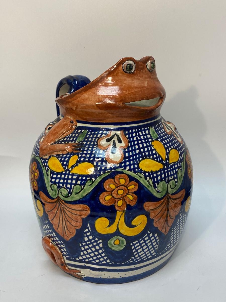 Vintage Mexican Folk Art Figural Frog Toad Pitcher Hand Painted Unsigned