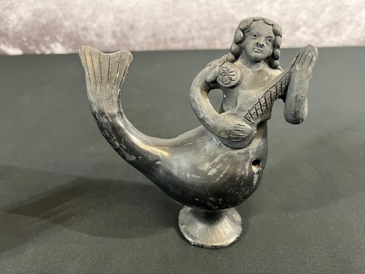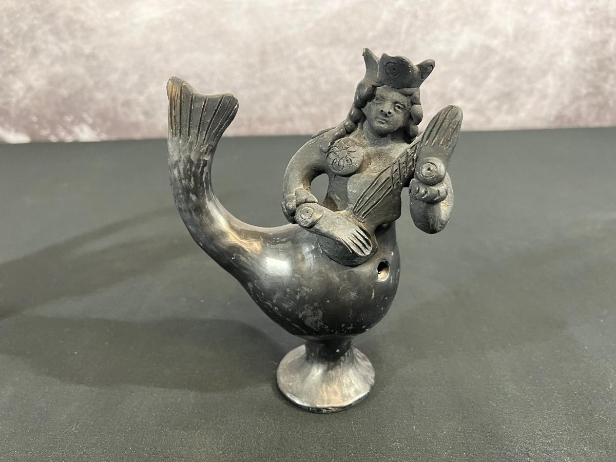 Vintage Mexican Folk Art Mermaid and Merman of Coyotepec Oaxaca Pottery Blackware