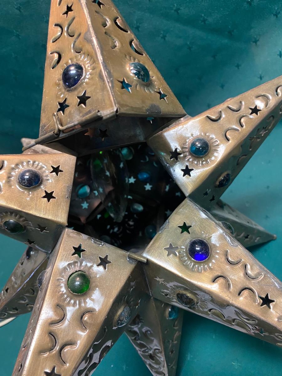 Vintage Mexican Folk Art Tin Lantern