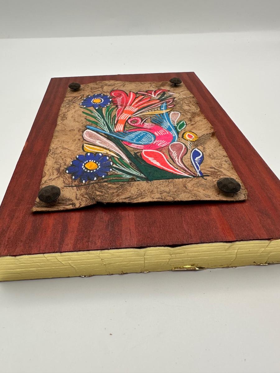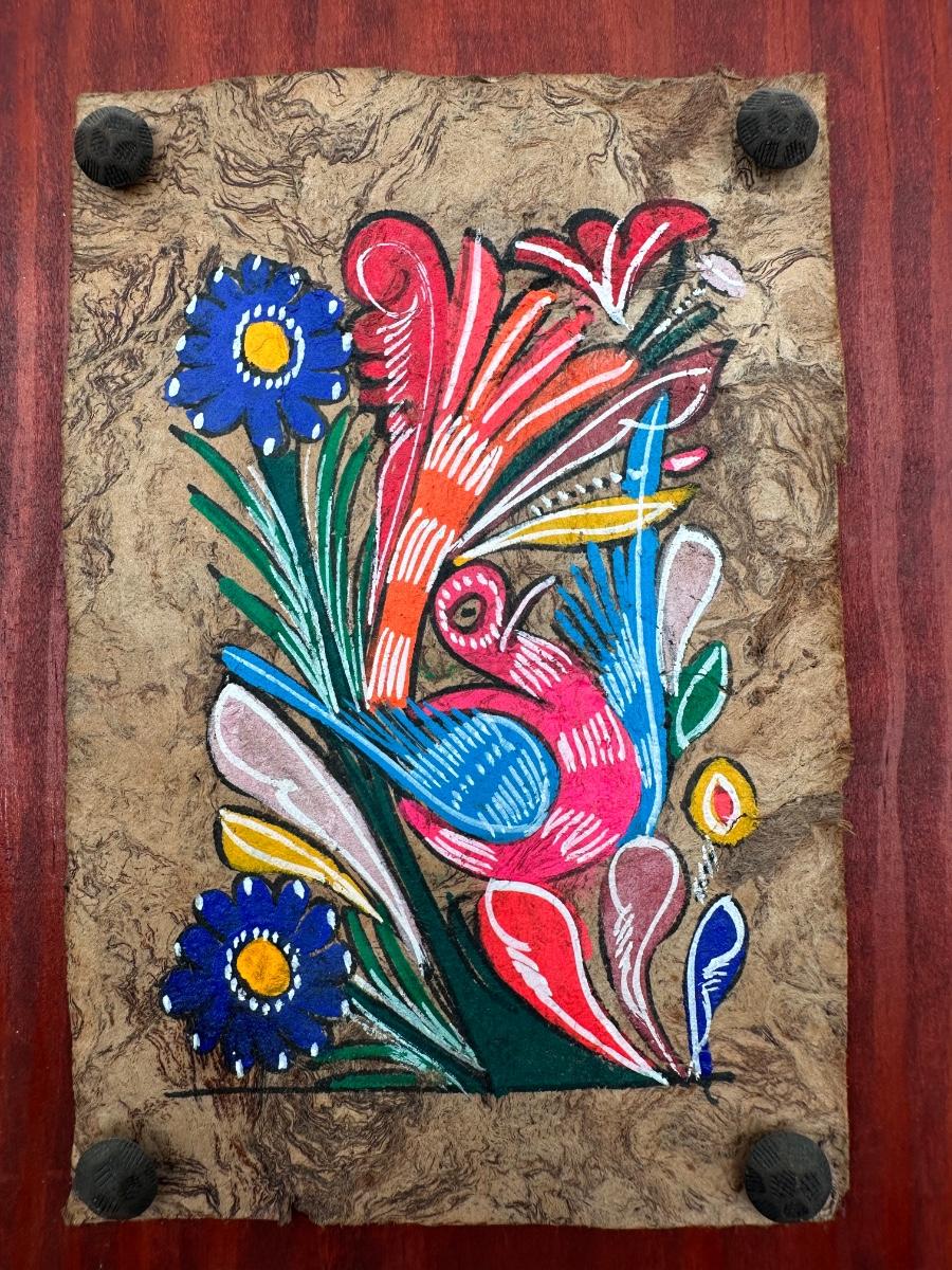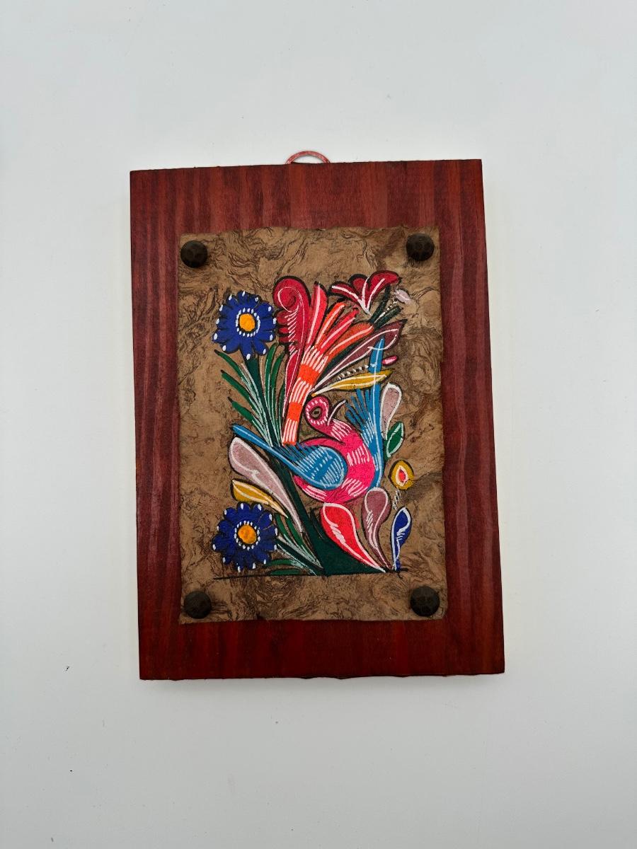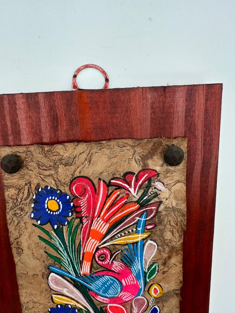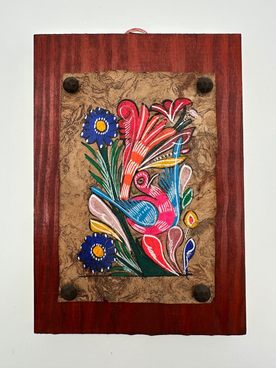 Vintage Mexican Hand-Painted Amate Bark Paper on wood.