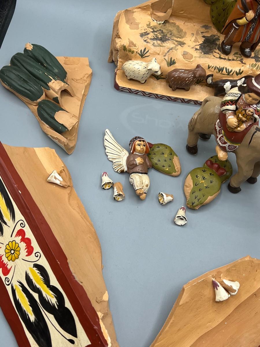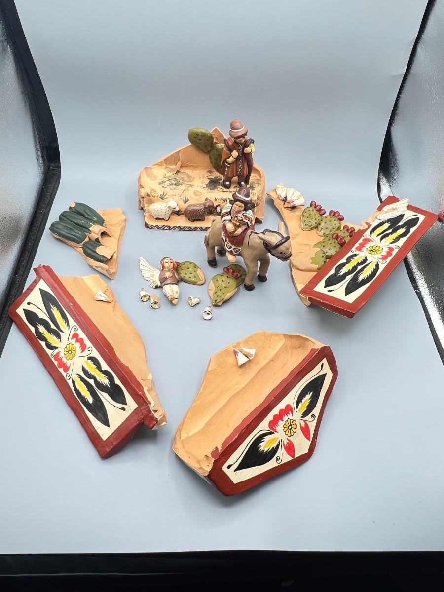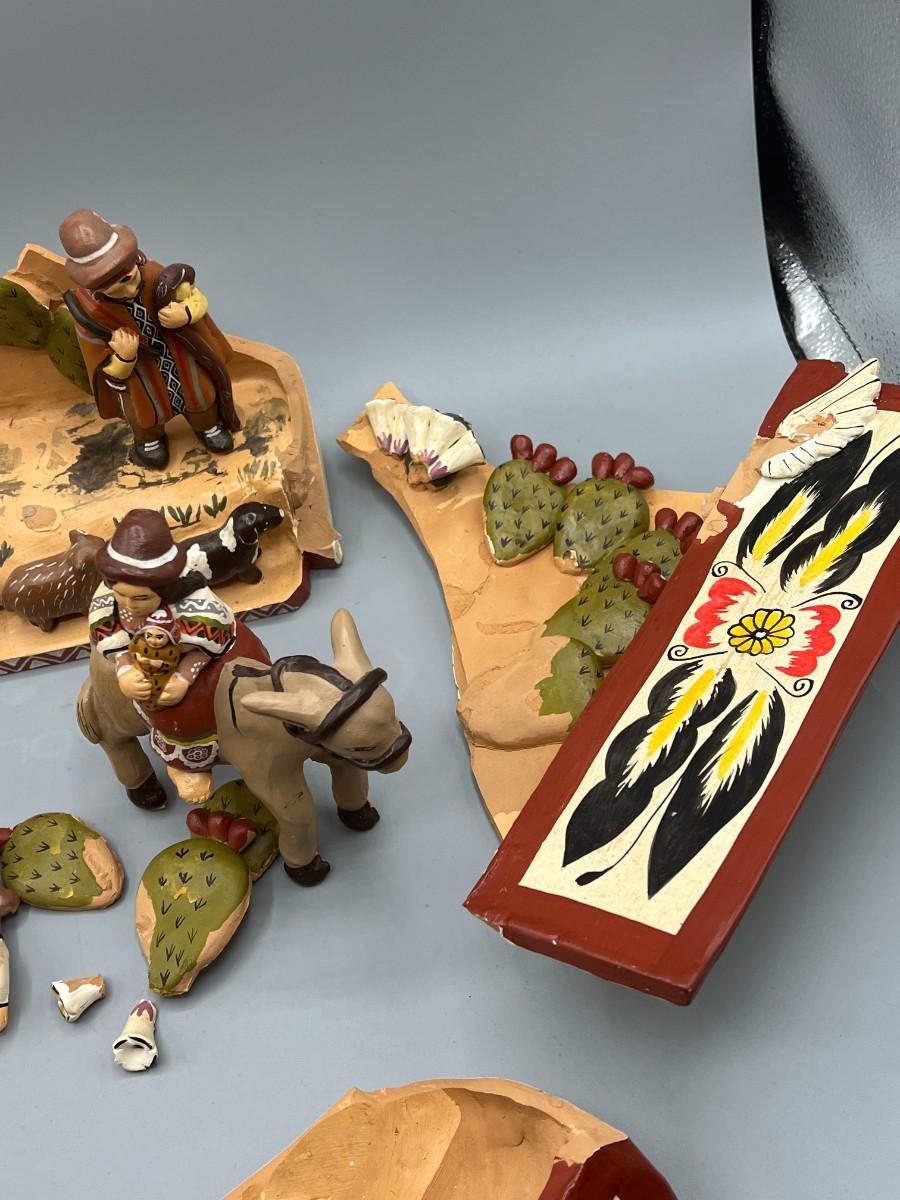 Vintage Mexican Pottery Folk Art Diorama *DAMAGED*