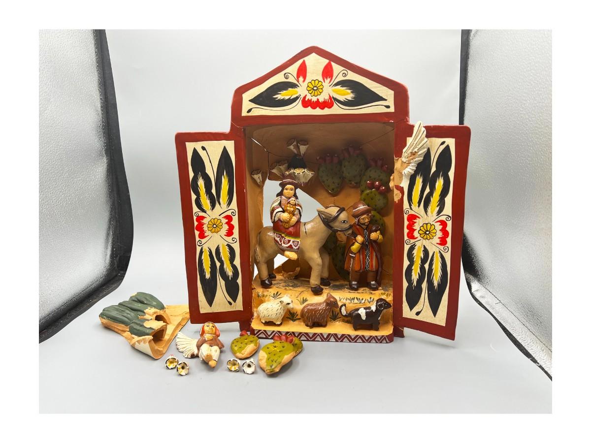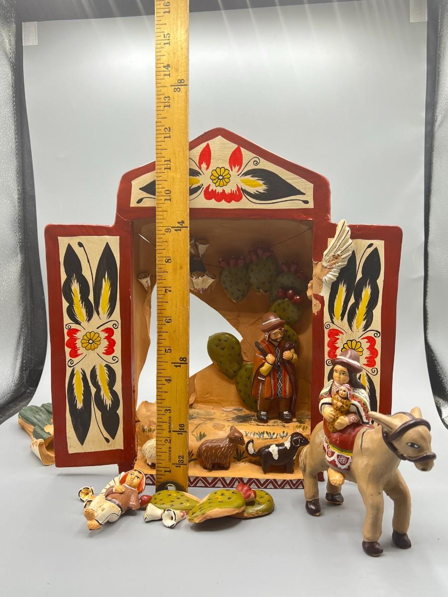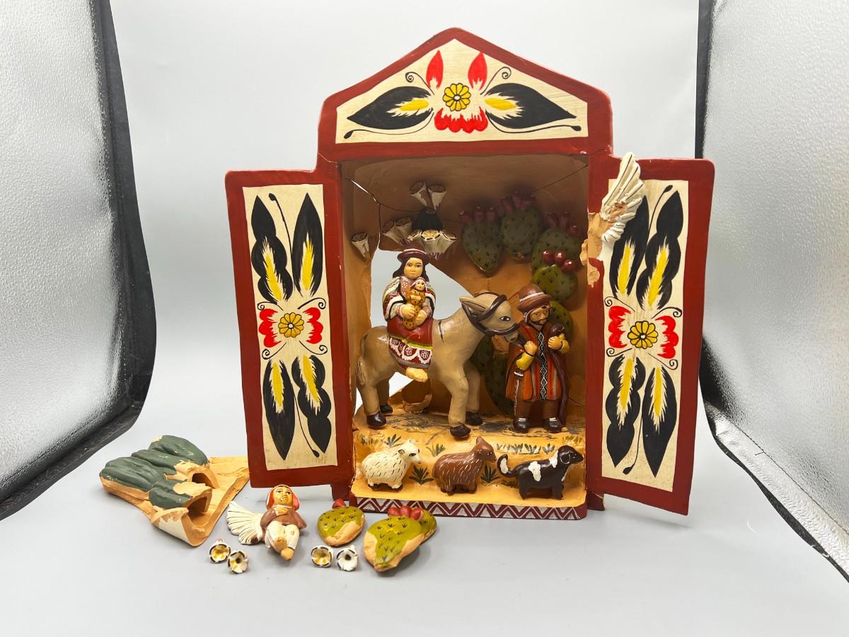 Vintage Mexican Pottery Folk Art Diorama *DAMAGED*