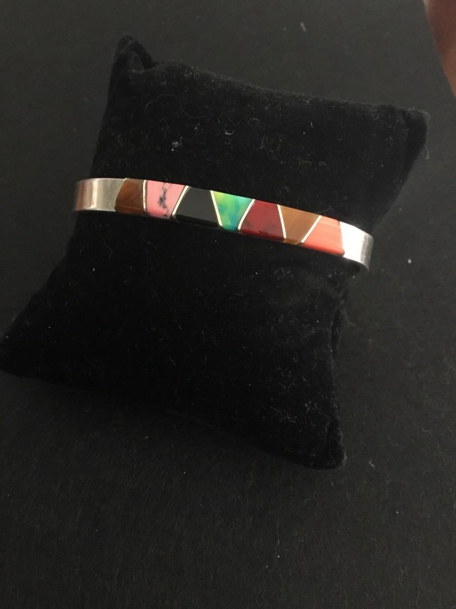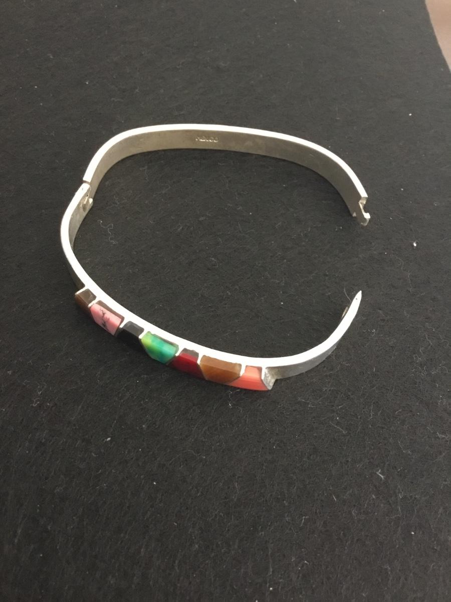 Vintage, Mexican square multi gemstone, , hinged bangle