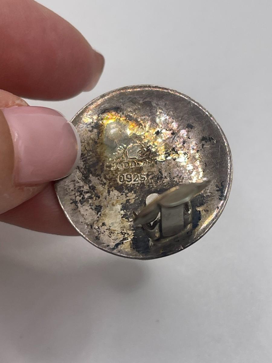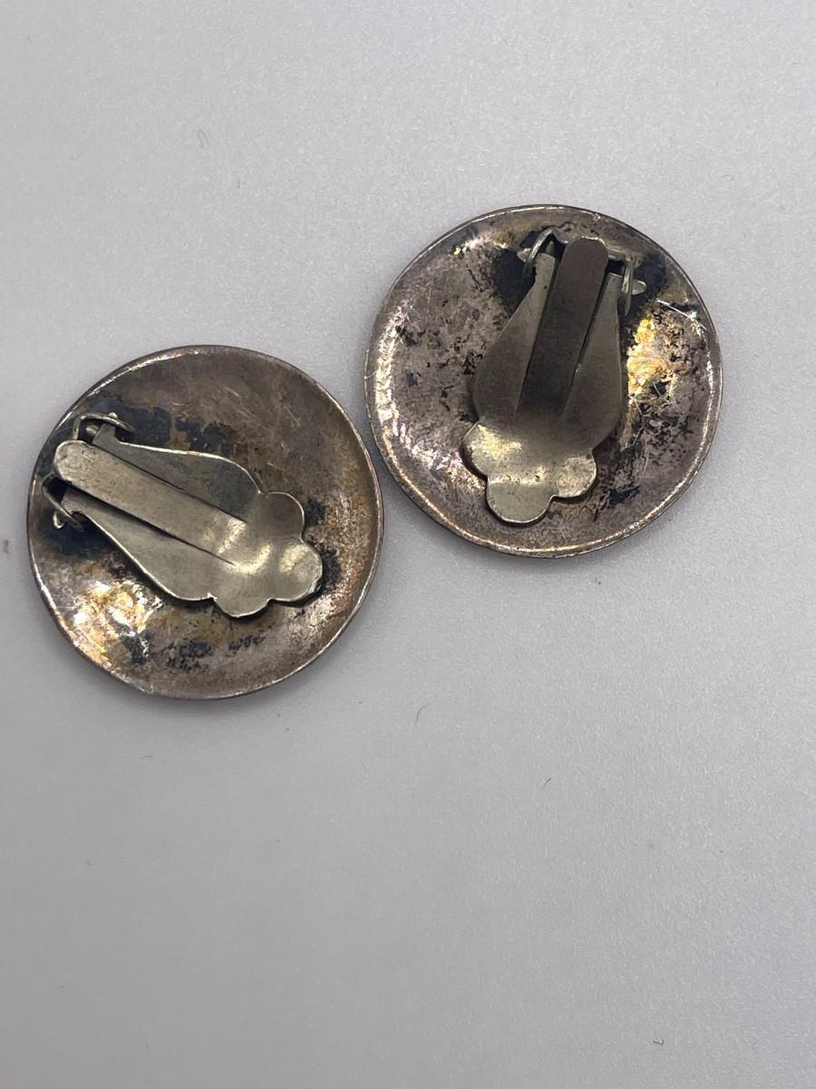 Vintage Mexican Sterling Silver and Turquoise Clip on Earrings. Approx 1"