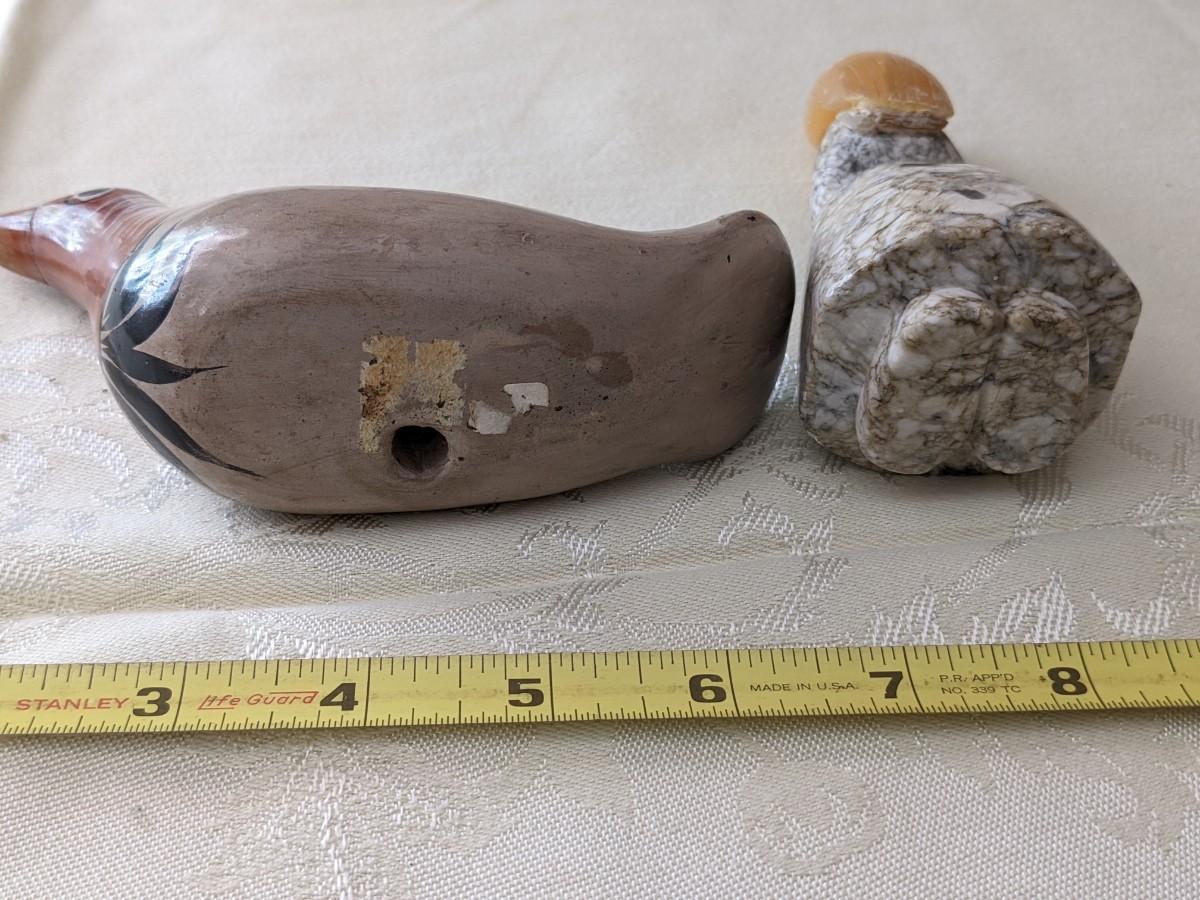 Vintage Mexican Tonala Pottery Bird and Folk Art Carved Marble Stone Young Girl Russia