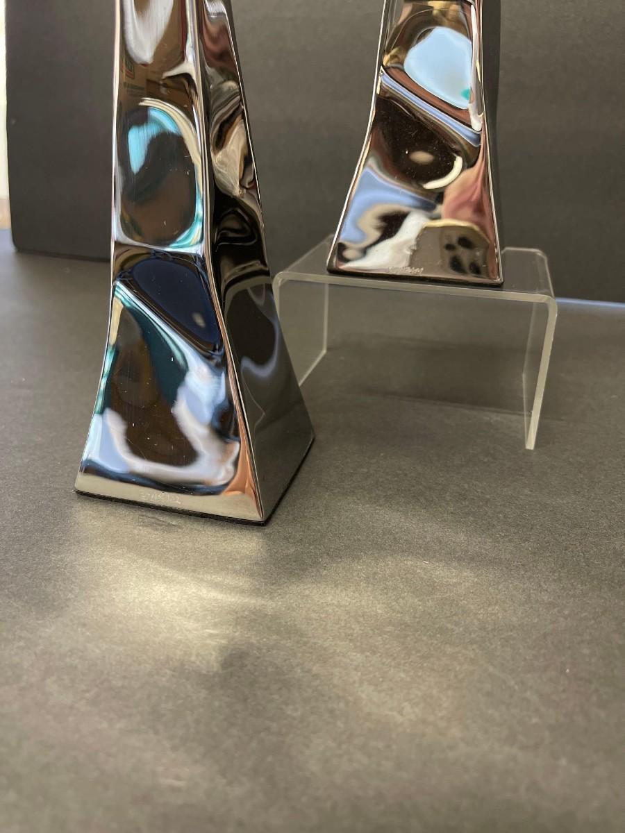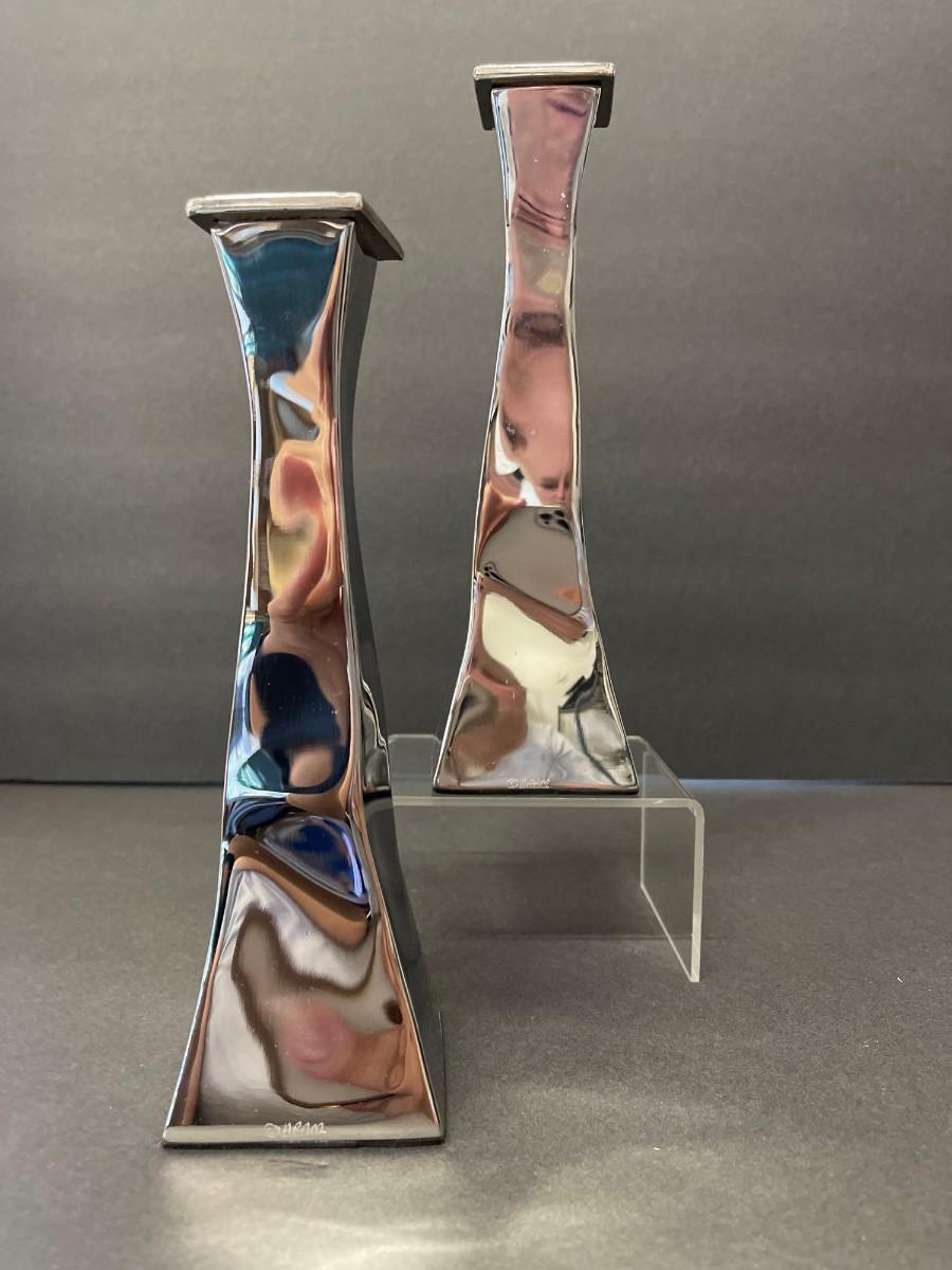 Vintage Michael Aram twisted metal candlesticks, signed. Each is 8 1/2 inches. Excellent condition.