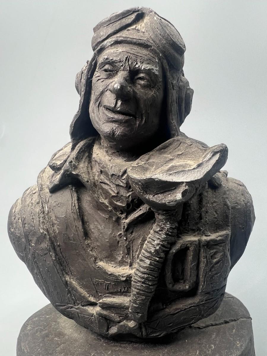 Vintage Michael Garman Signed Military Fighter Pilot Bronzetone Clay Plaster Sculpture