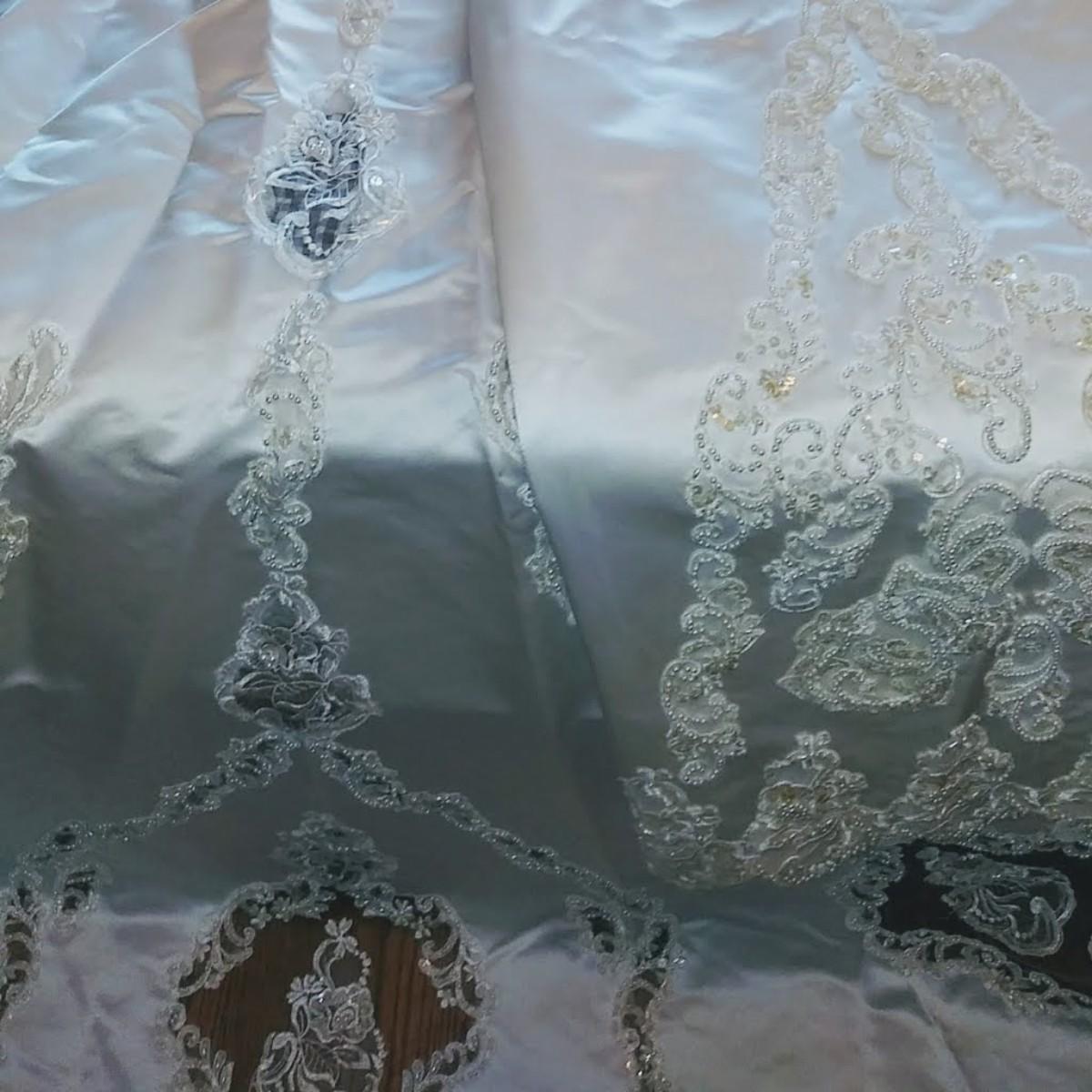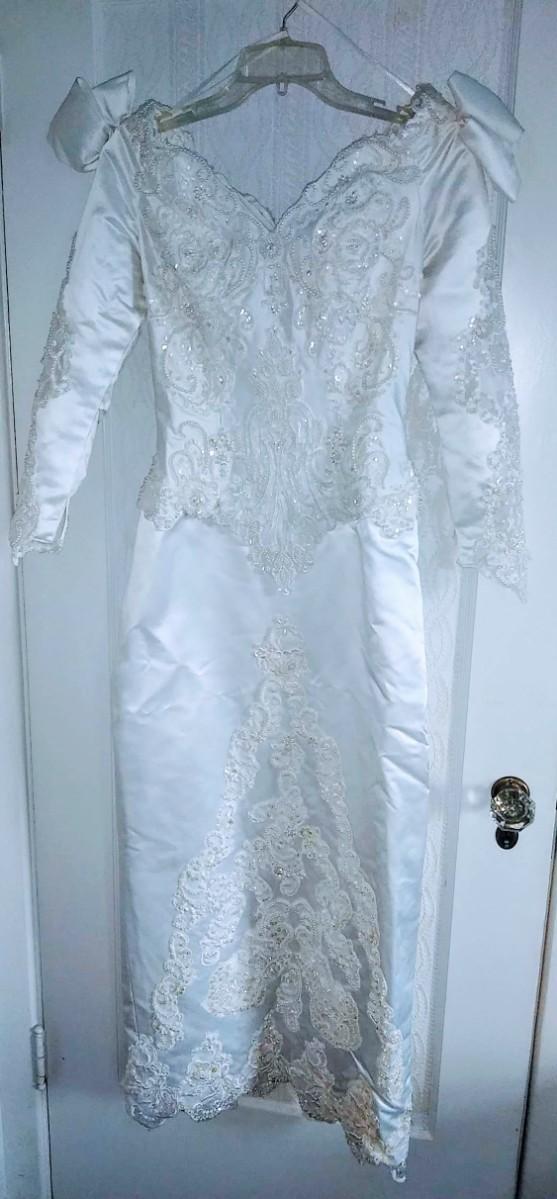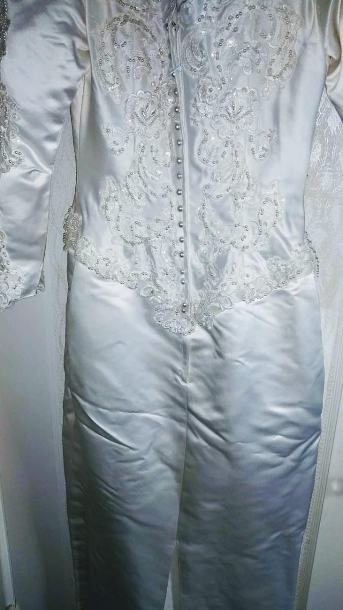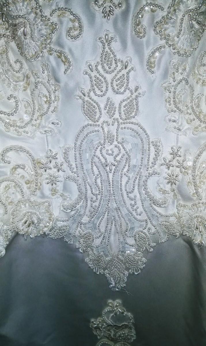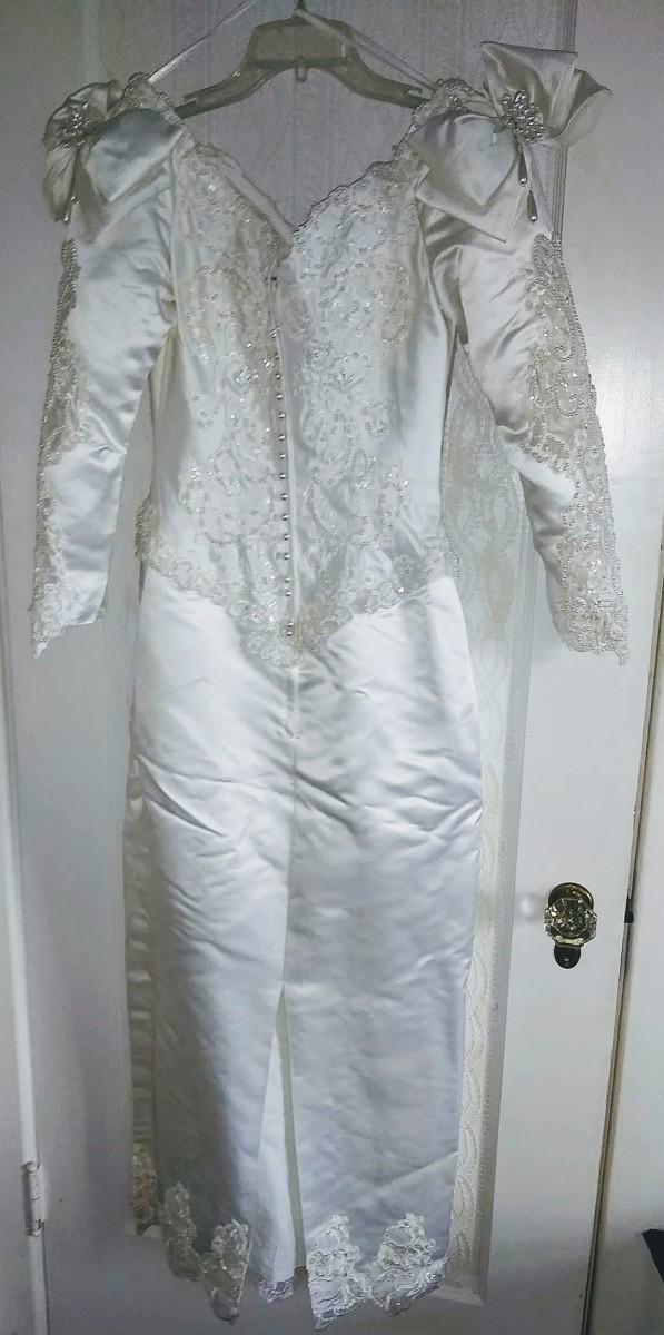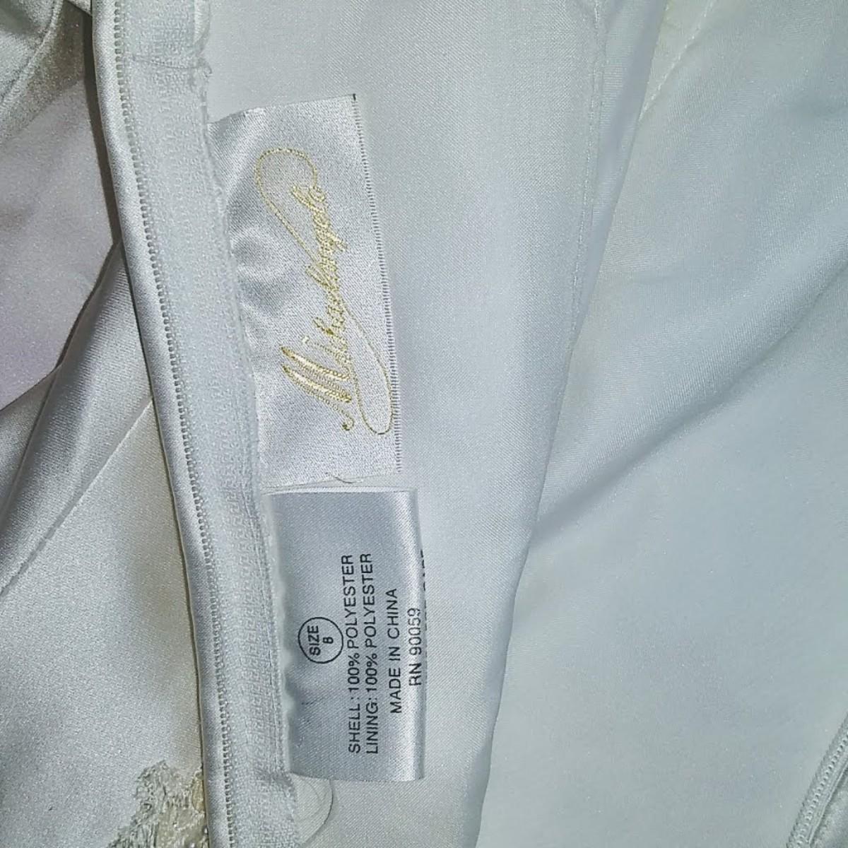 Size 8 two piece gown. Dress with removable train. Gorgeous, preserved after 1 wear & in excellent condition. Michelangelo Gown, original price $2999