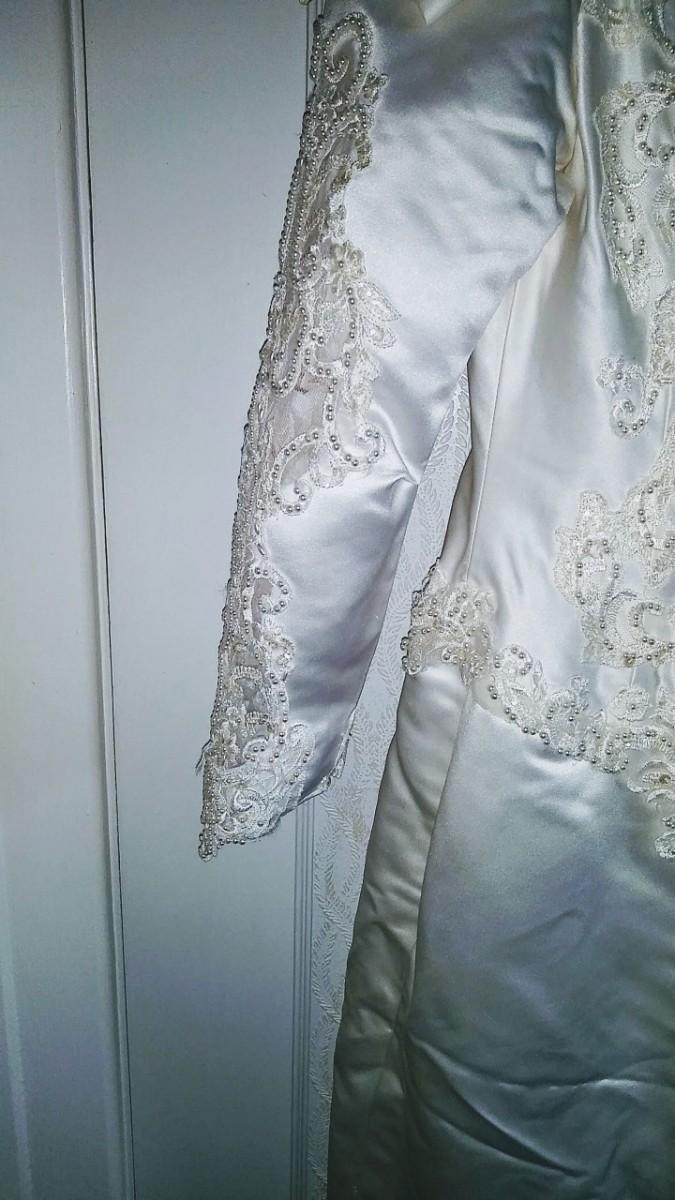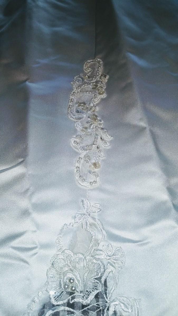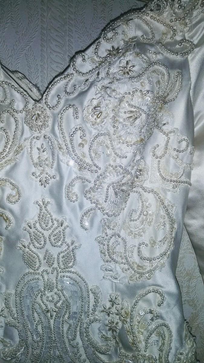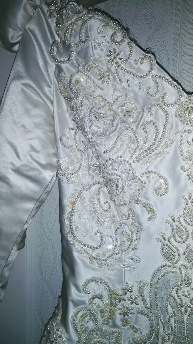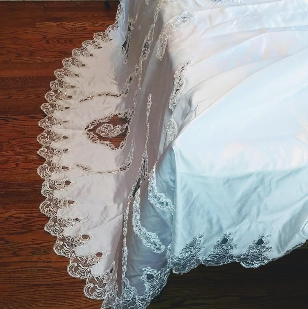 Size 8 two piece gown. Dress with removable train. Gorgeous, preserved after 1 wear & in excellent condition. Michelangelo Gown, original price $2999