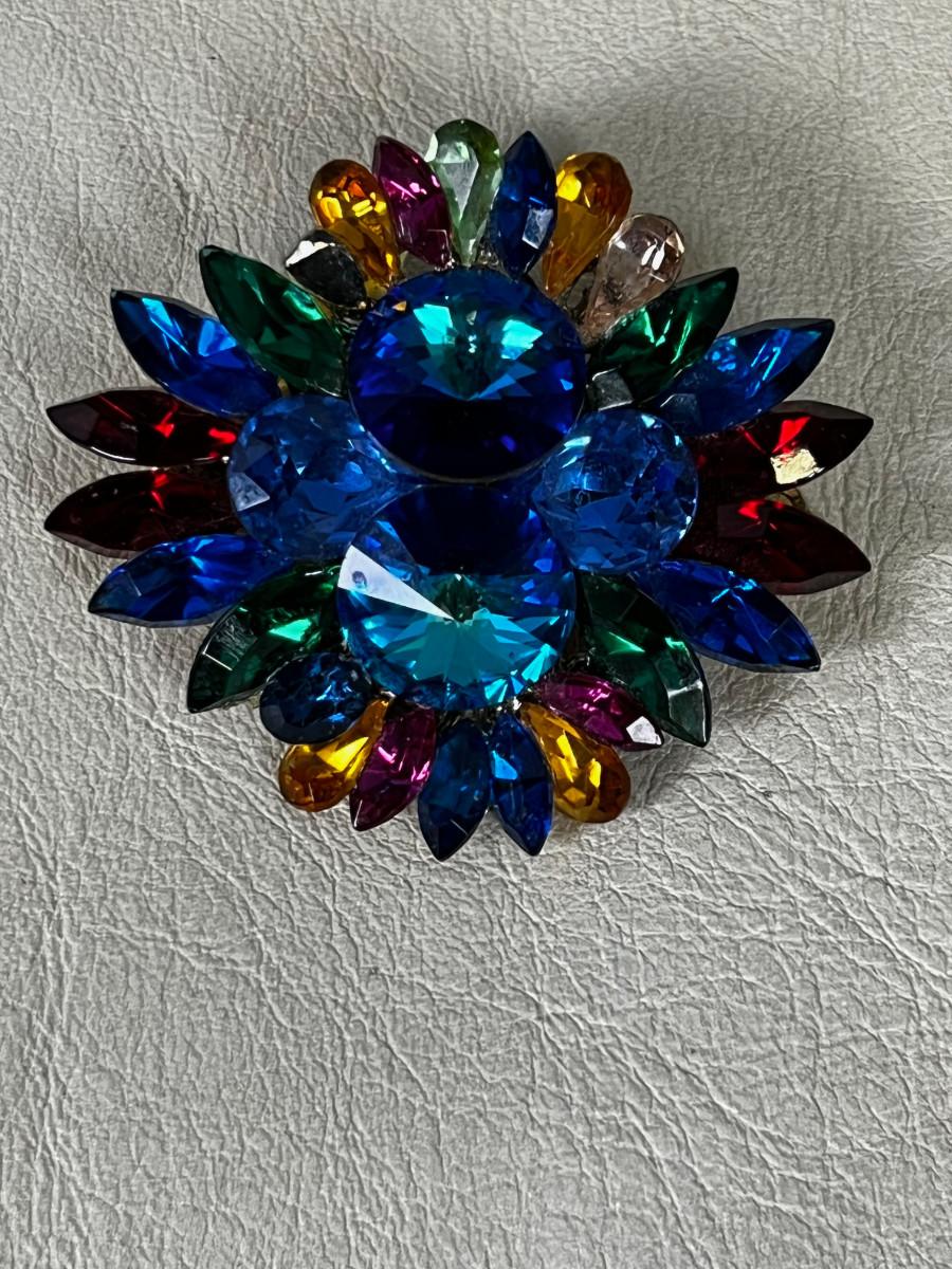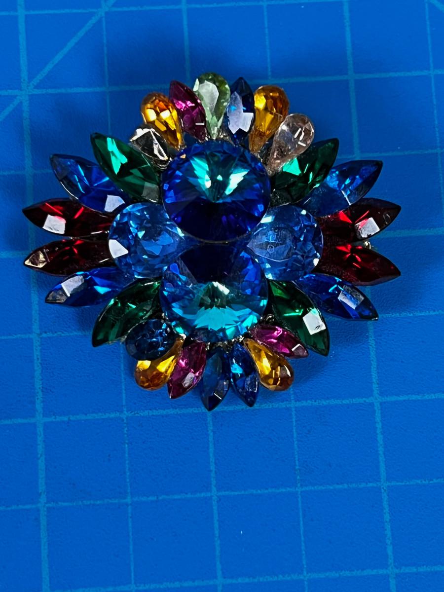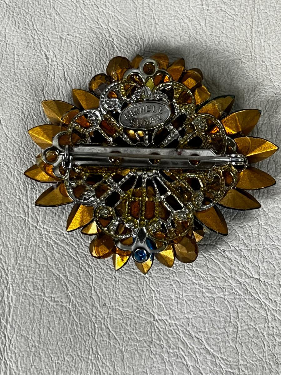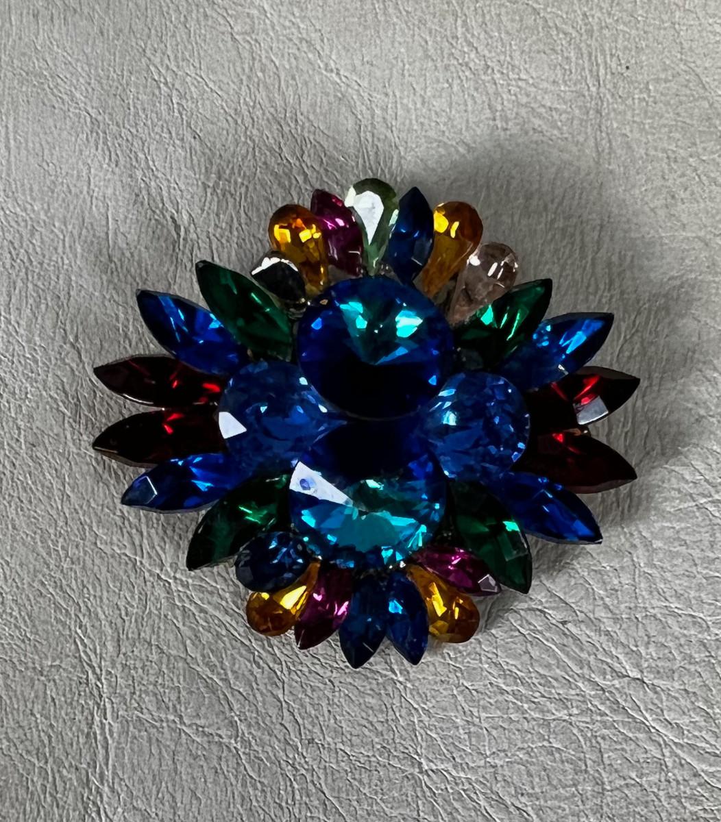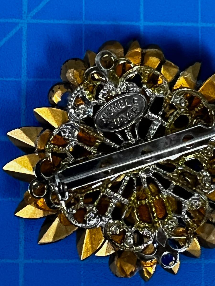 Vintage Michele Sugar Signed Blue Rhinestone Brooch