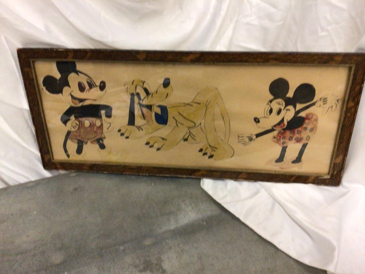 Vintage Mickey Minnie and Pluto Painted Cut Out Framed