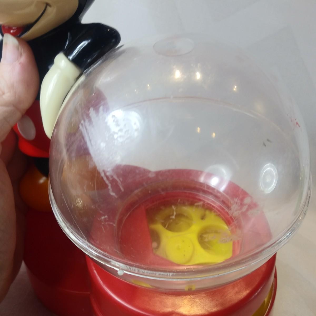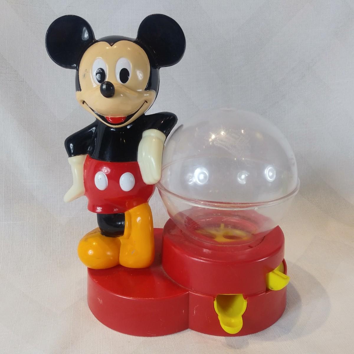 This auction lot is for a Vintage Mickey Mouse Gum Ball Machine. This Mickey collectible is dated 1988. It is small and the clear globe has several scratches and appears to have been played with.