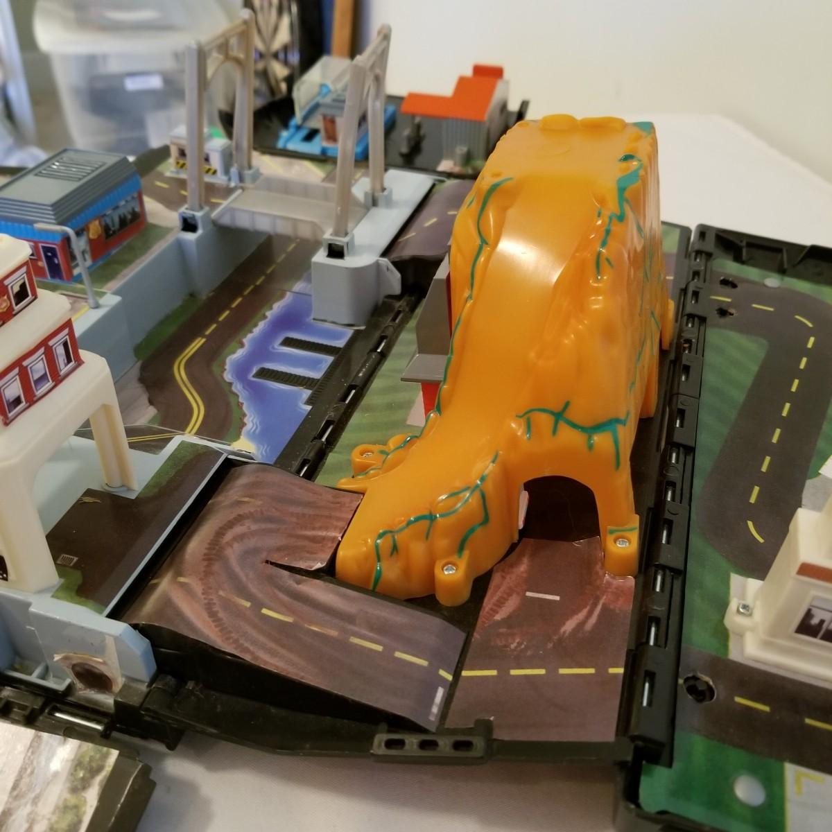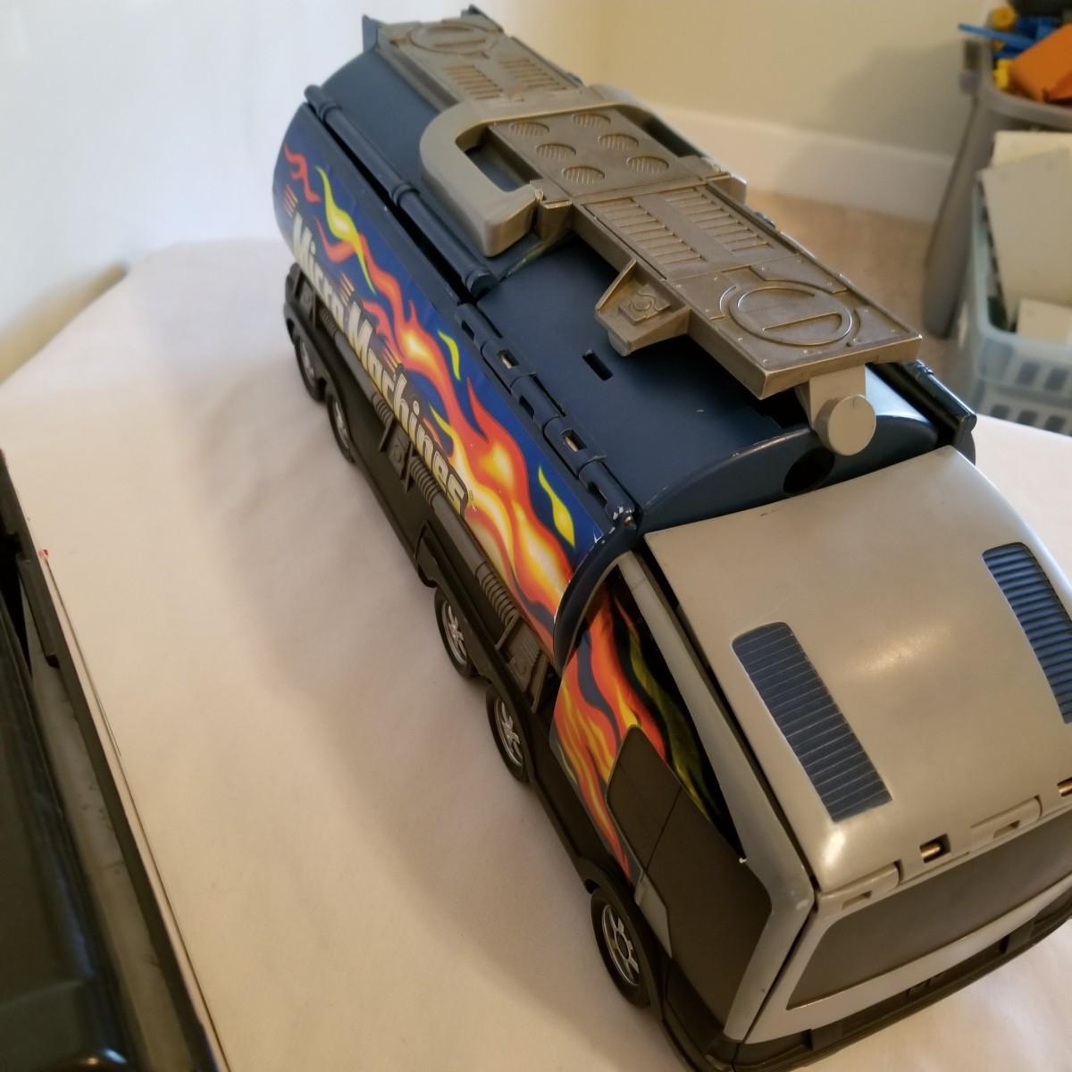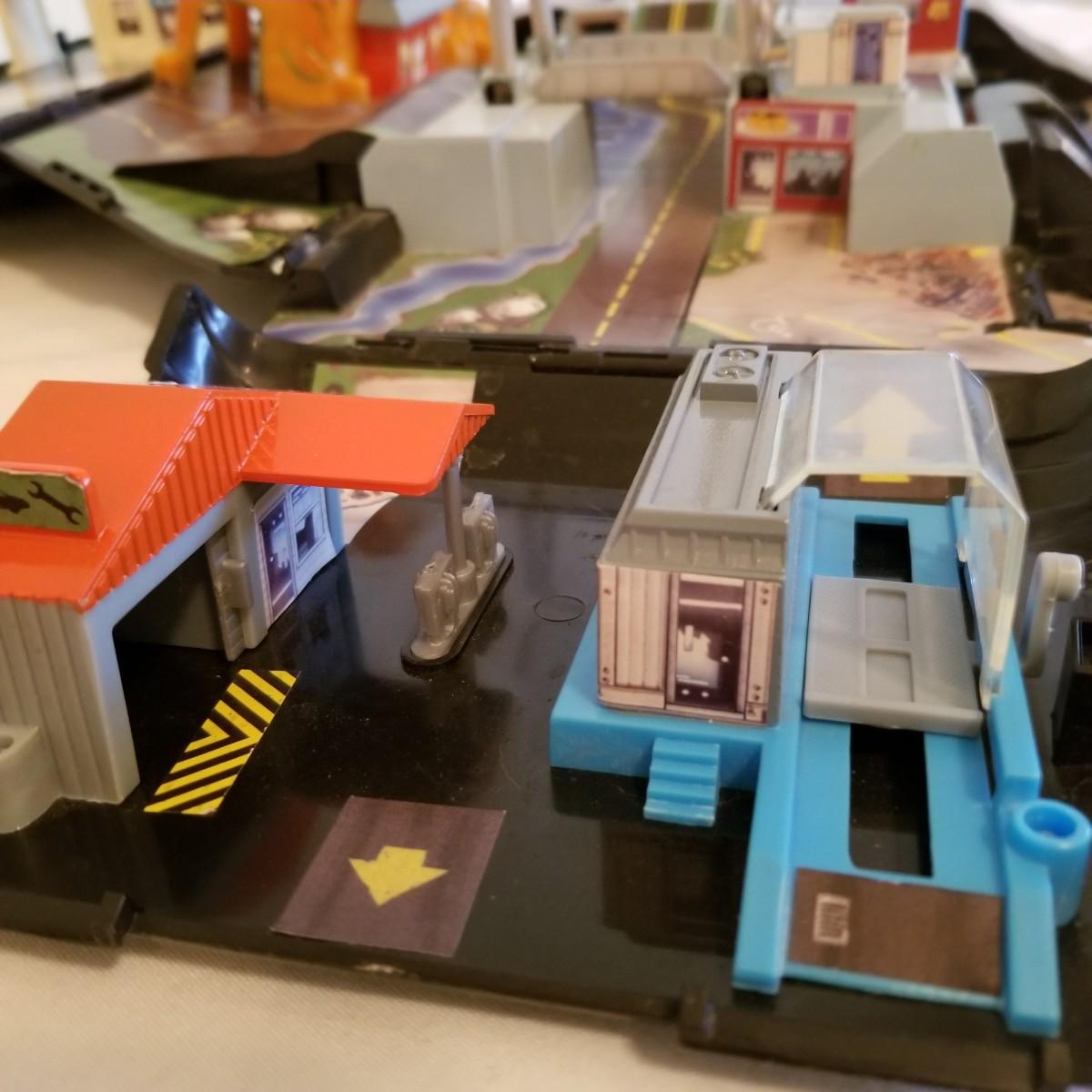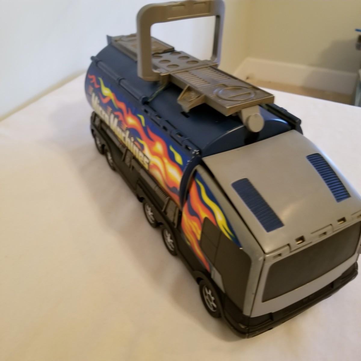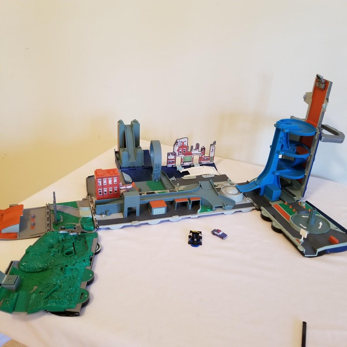 Two Micro Machines car playsets, Super Van City and Super Stunt City Semi Tanker. Both units from the 90's, open to reveal numerous opportunities to play with cars and trucks. Built in scenery, garages, ramps, roads, etc. Sixteen cars total for the two sets. Smaller unit measures 7"16"x7" closed, larger one is 6"x17"x7". Not certain if all original pieces are included. See photos for details. Shipping available.