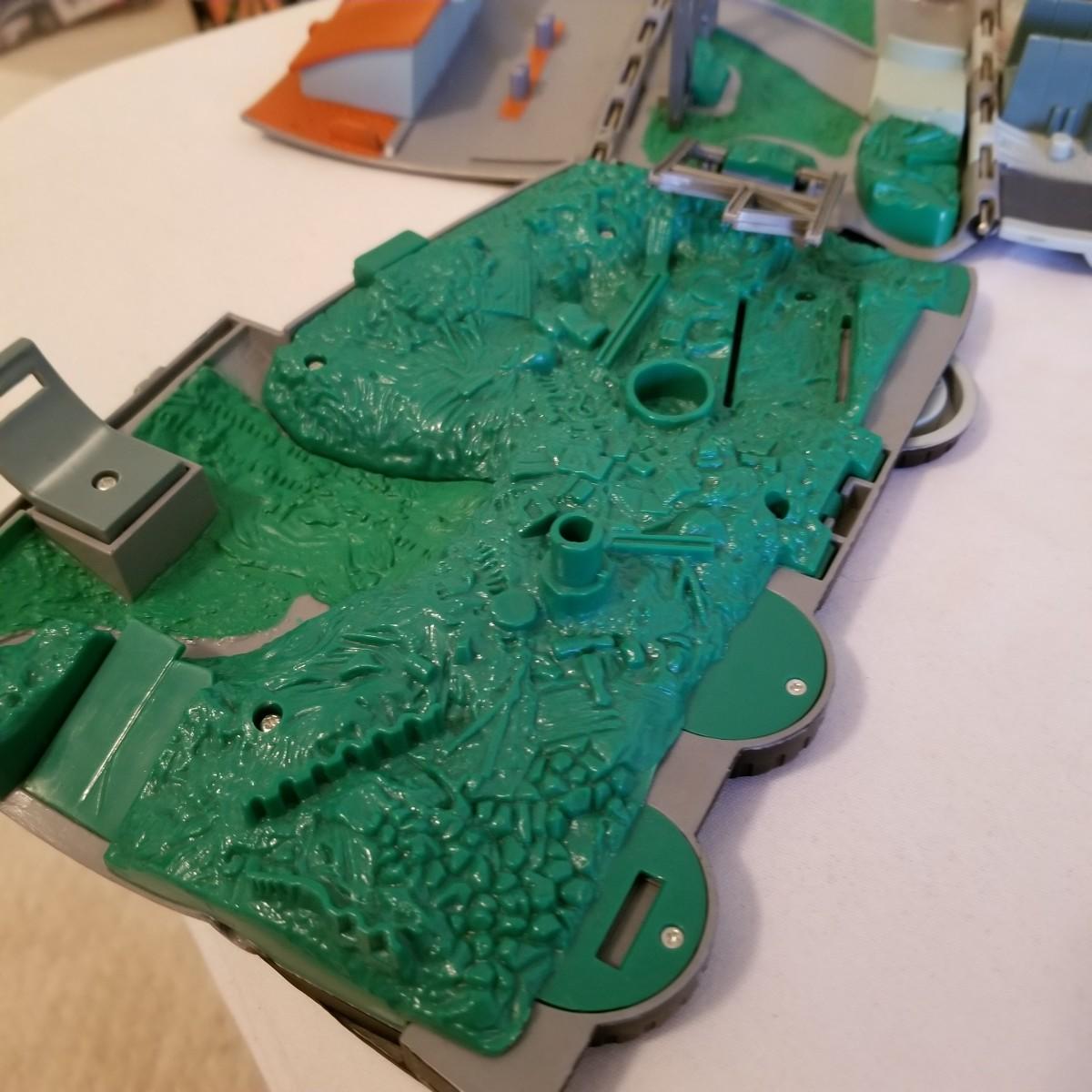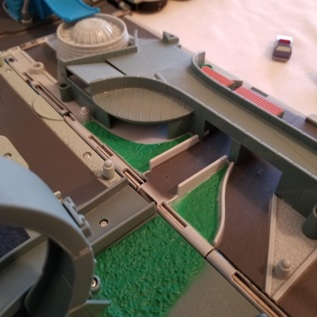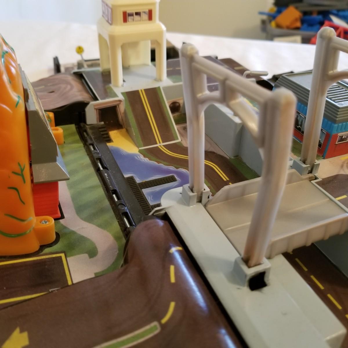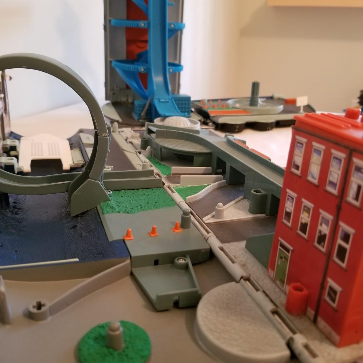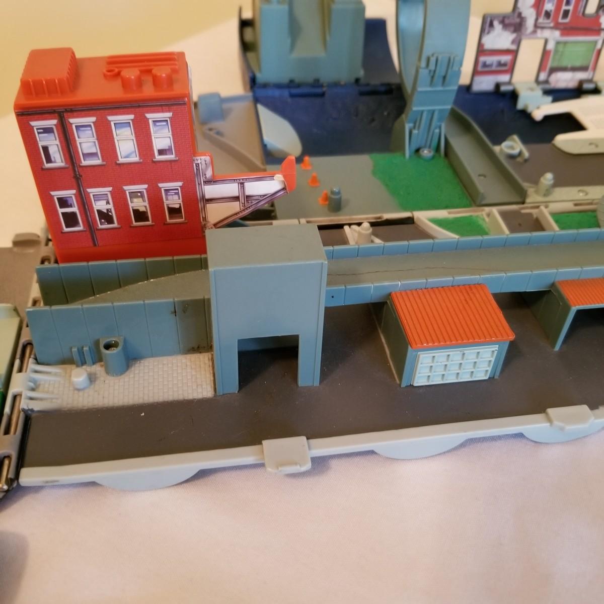 Two Micro Machines car playsets, Super Van City and Super Stunt City Semi Tanker. Both units from the 90's, open to reveal numerous opportunities to play with cars and trucks. Built in scenery, garages, ramps, roads, etc. Sixteen cars total for the two sets. Smaller unit measures 7"16"x7" closed, larger one is 6"x17"x7". Not certain if all original pieces are included. See photos for details. Shipping available.