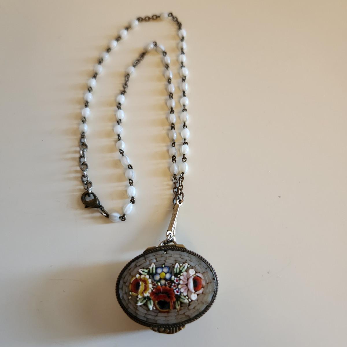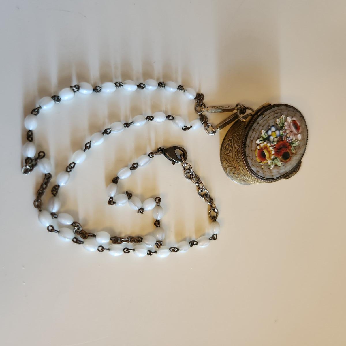 Vintage Micro-Mosiac Pill Box Necklace