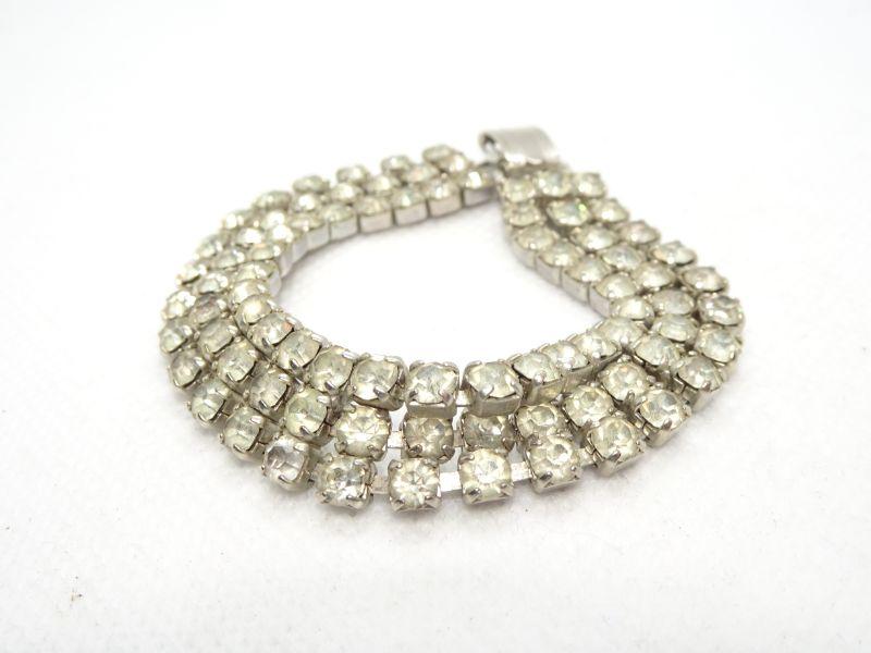 Vintage Mid Century 3 strand Rhinestone Bracelet, Evening Wear Jewels