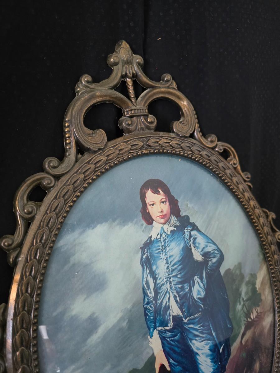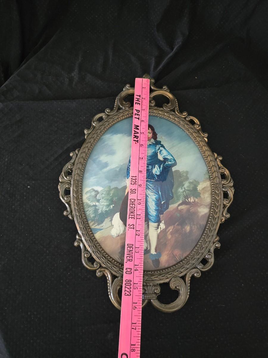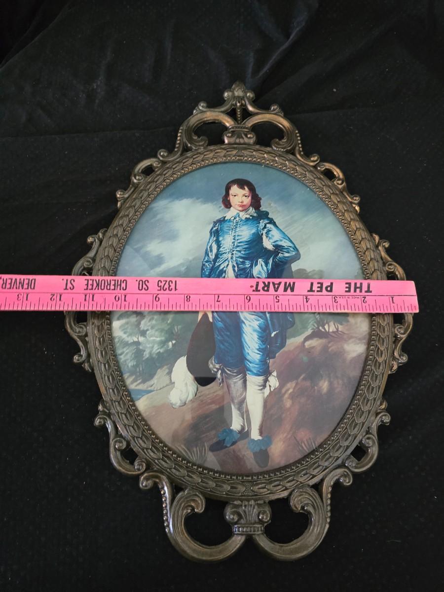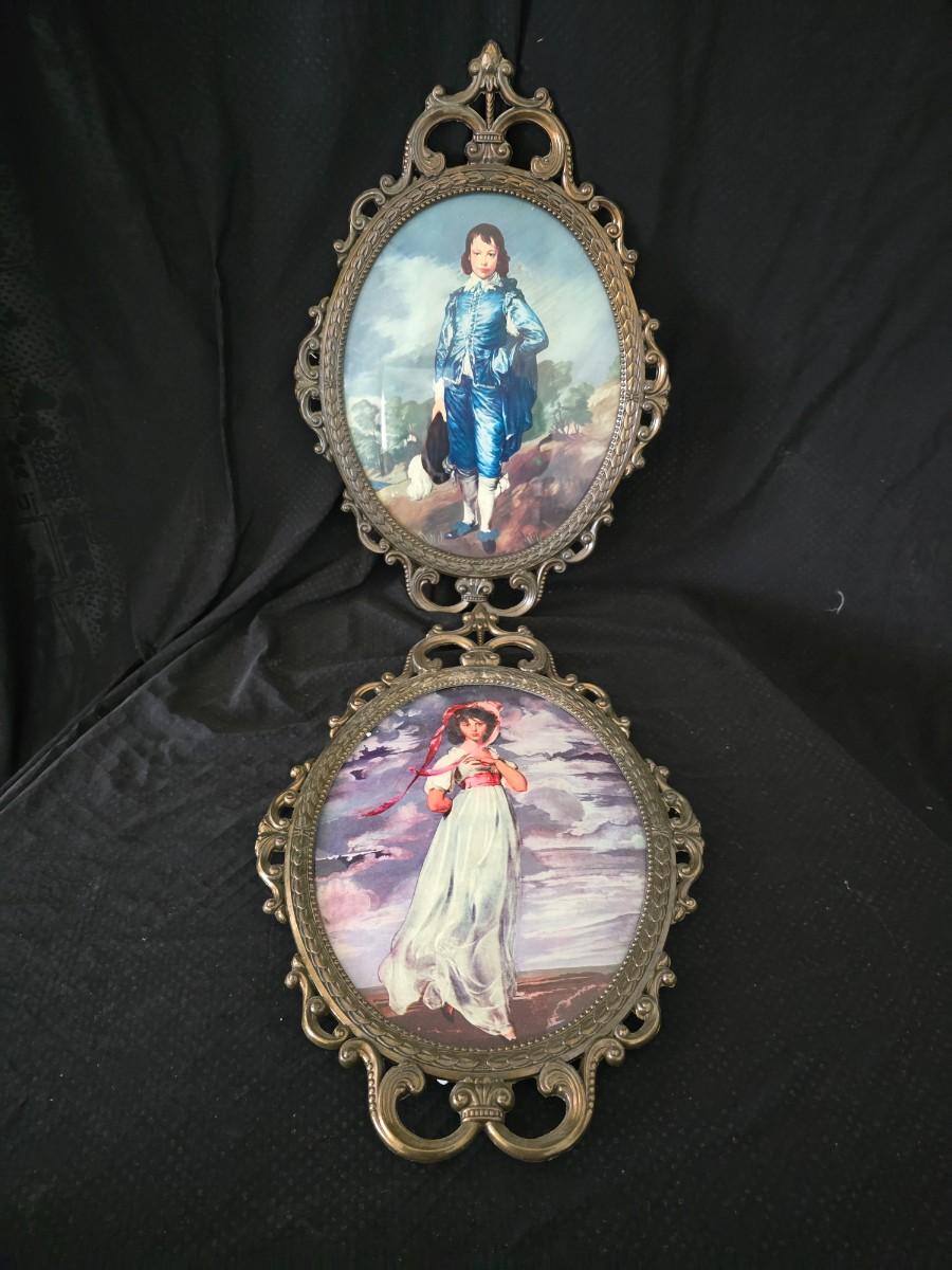 Vintage Mid Century Brass Metal Framed Blue Boy and Pinkie Set of 2 Ornate Photo Frame Made in Italy convex glass