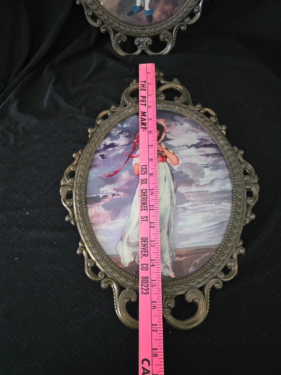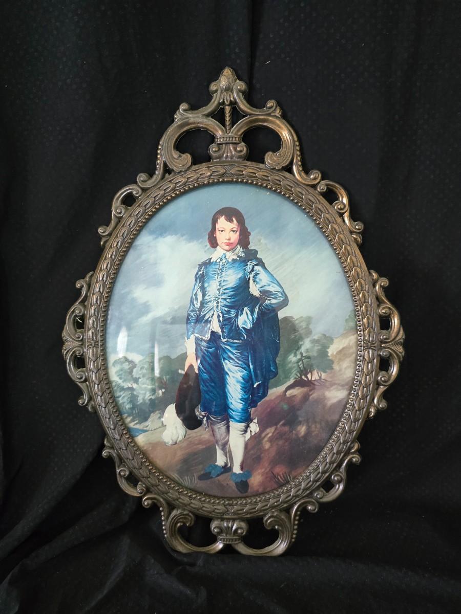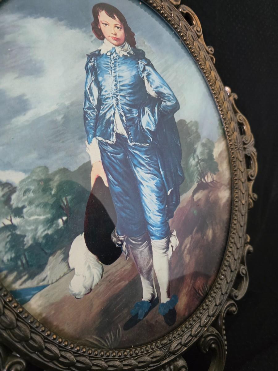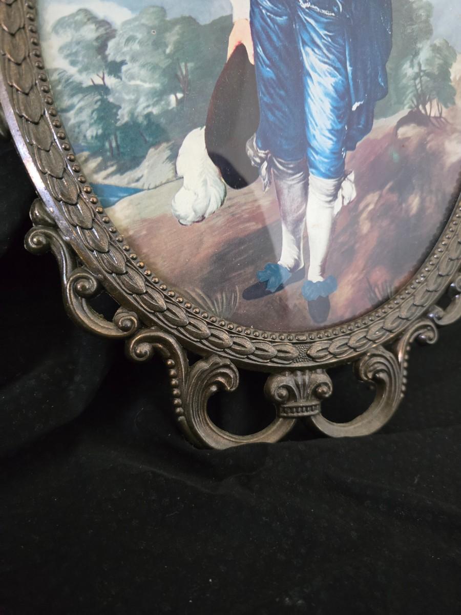 Vintage Mid Century Brass Metal Framed Blue Boy and Pinkie Set of 2 Ornate Photo Frame Made in Italy convex glass