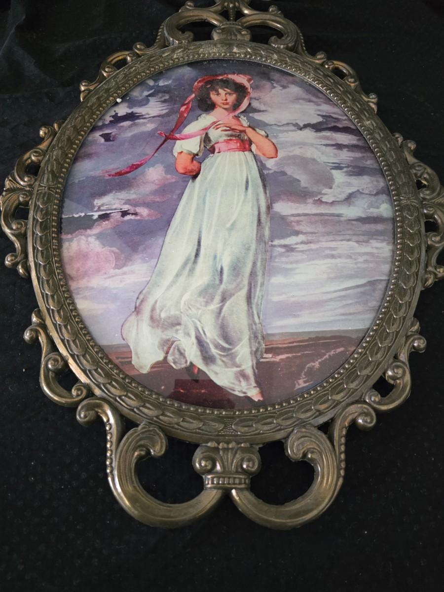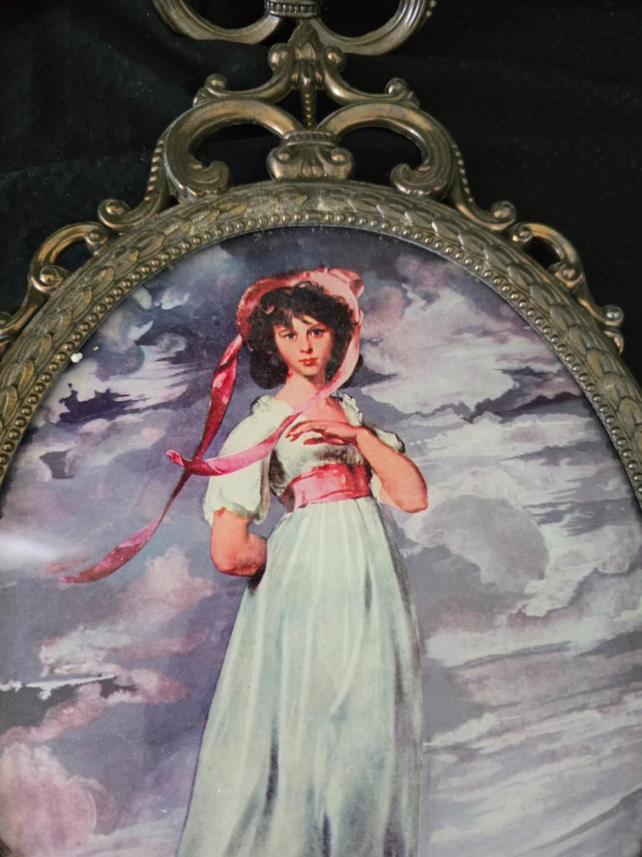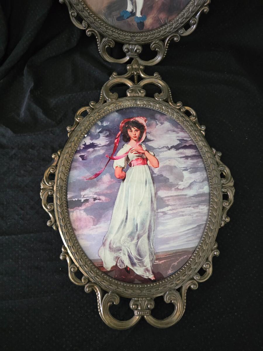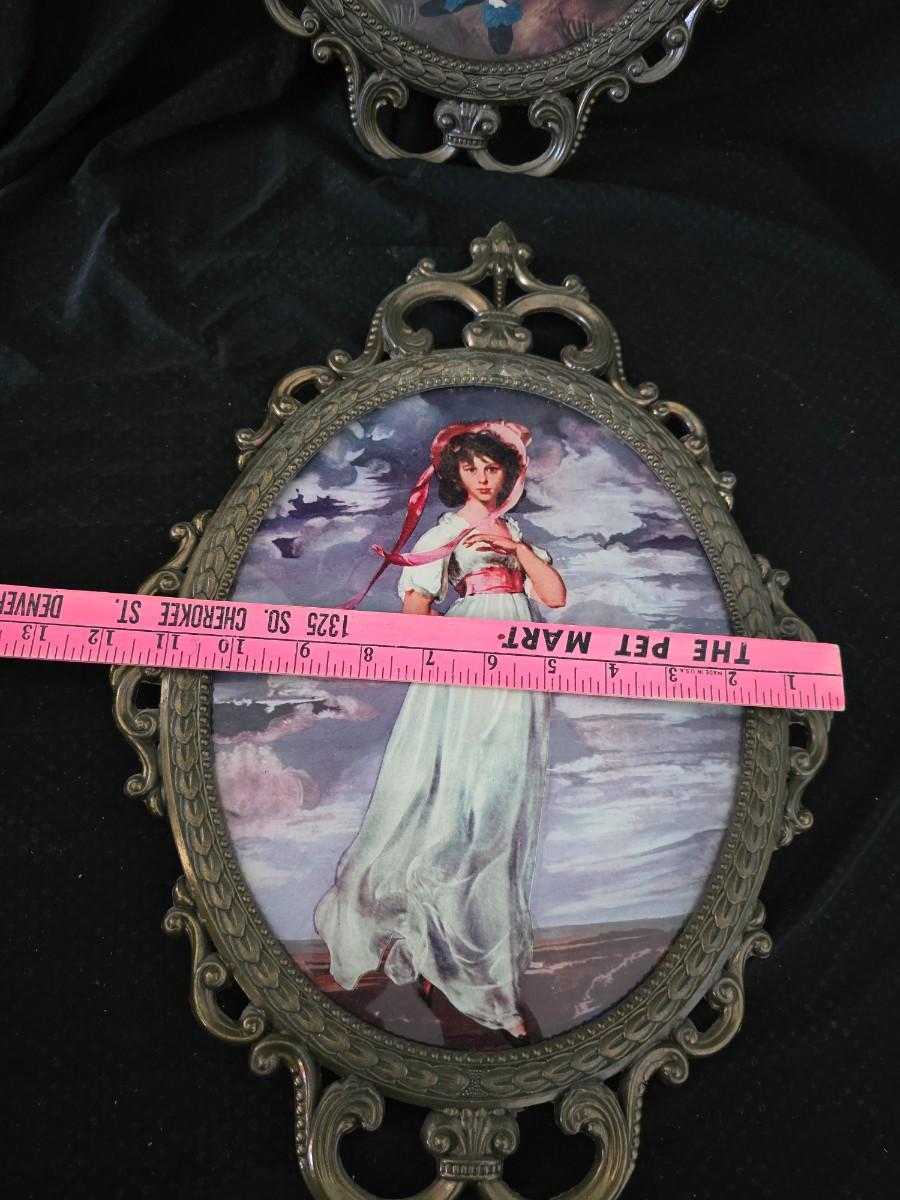 Vintage Mid Century Brass Metal Framed Blue Boy and Pinkie Set of 2 Ornate Photo Frame Made in Italy convex glass