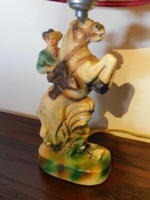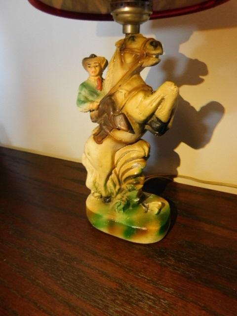 Vintage Mid Century Chalkware Roy Rogers and Trigger Table Lamp 15" has a few small areas of missing color but has great look!