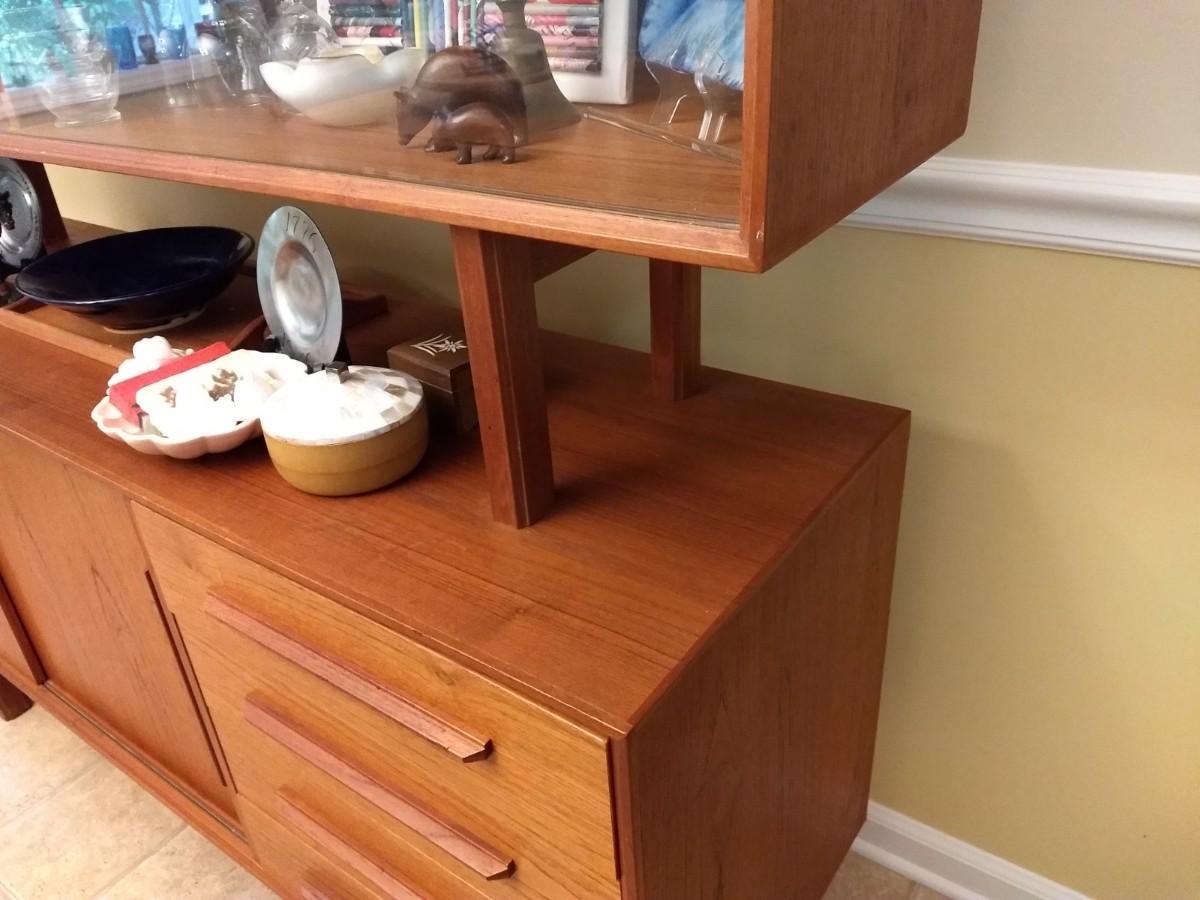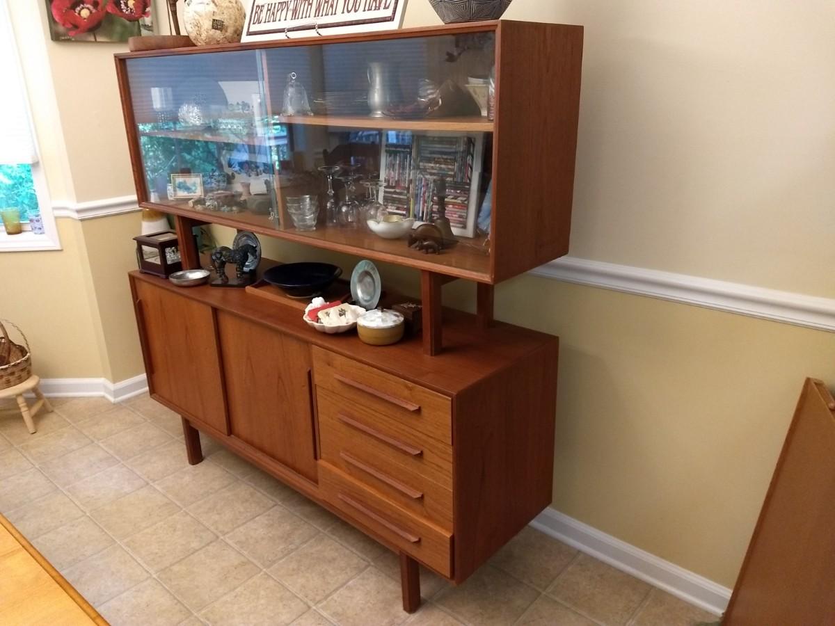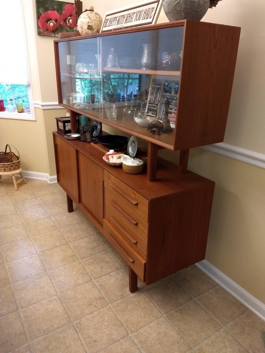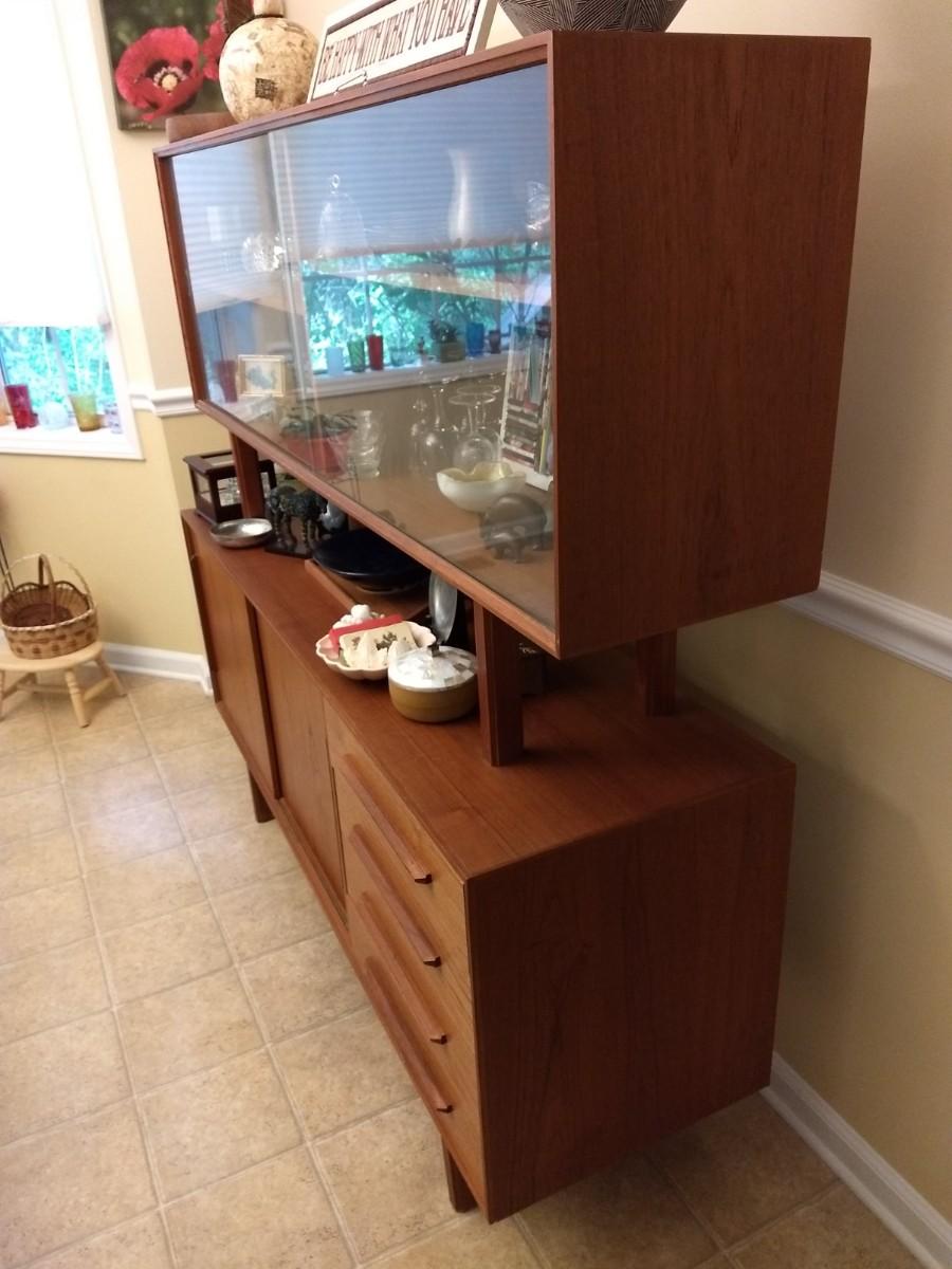 Vintage Mid Century Danish Design Reproduction Buffet with Display Hutch (No Contents)