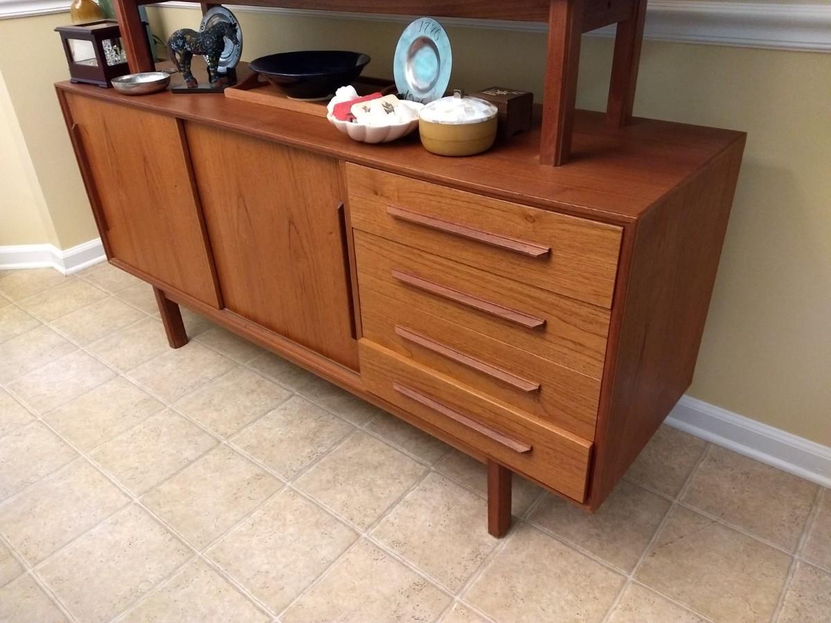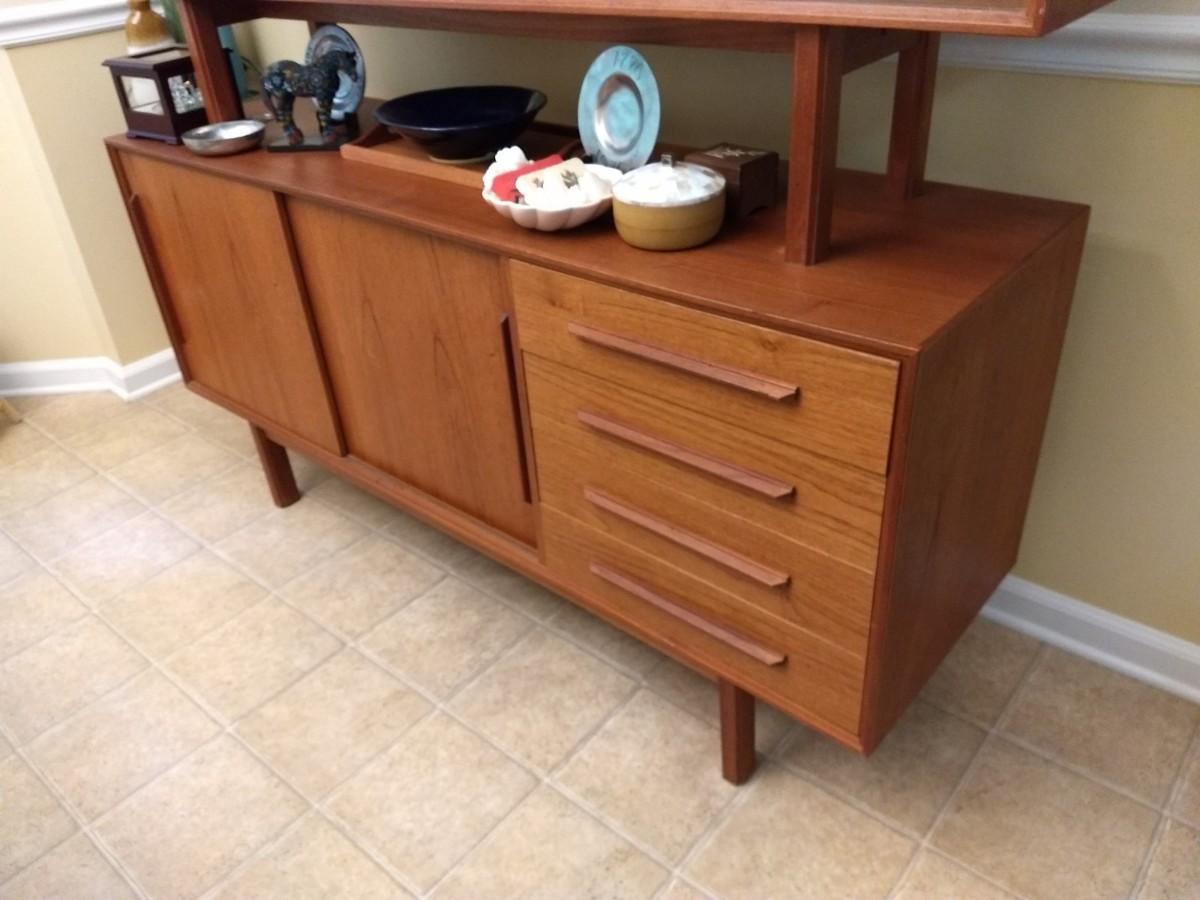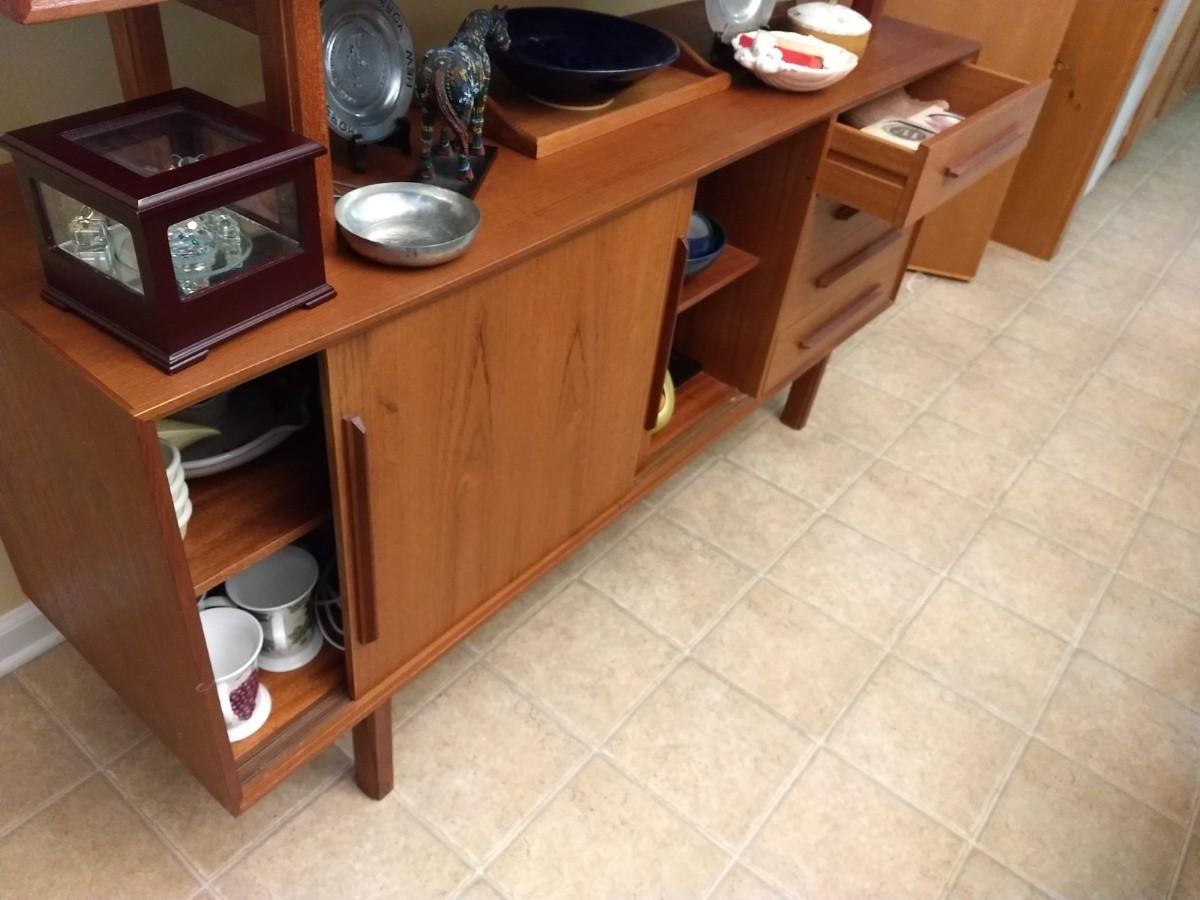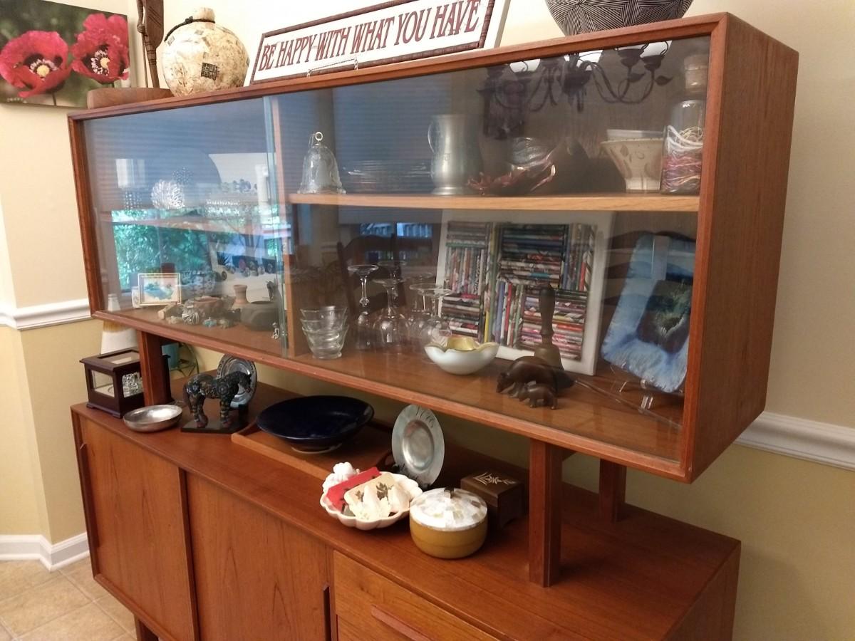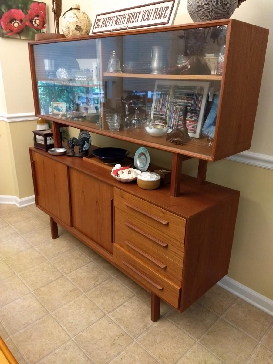 Vintage Mid Century Danish Design Reproduction Buffet with Display Hutch (No Contents)