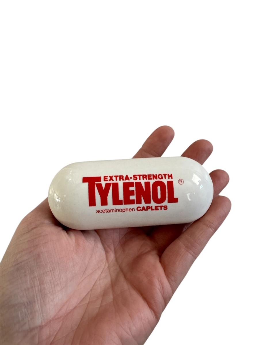 Vintage Mid Century Extra-Strength Tylenol Capsule Porcelain Paperweight 4" - Acetaminophen Pill Home Decor Pharma Advertising Decor