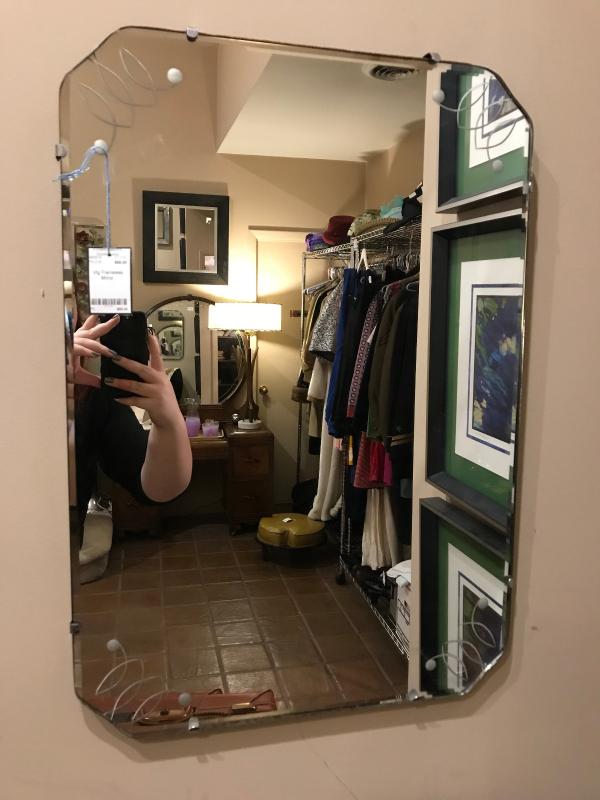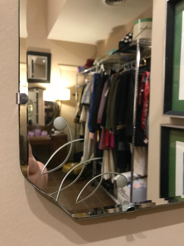 Lot 36-Vintage Mid Century Frameless Beveled and Etched Mirror
