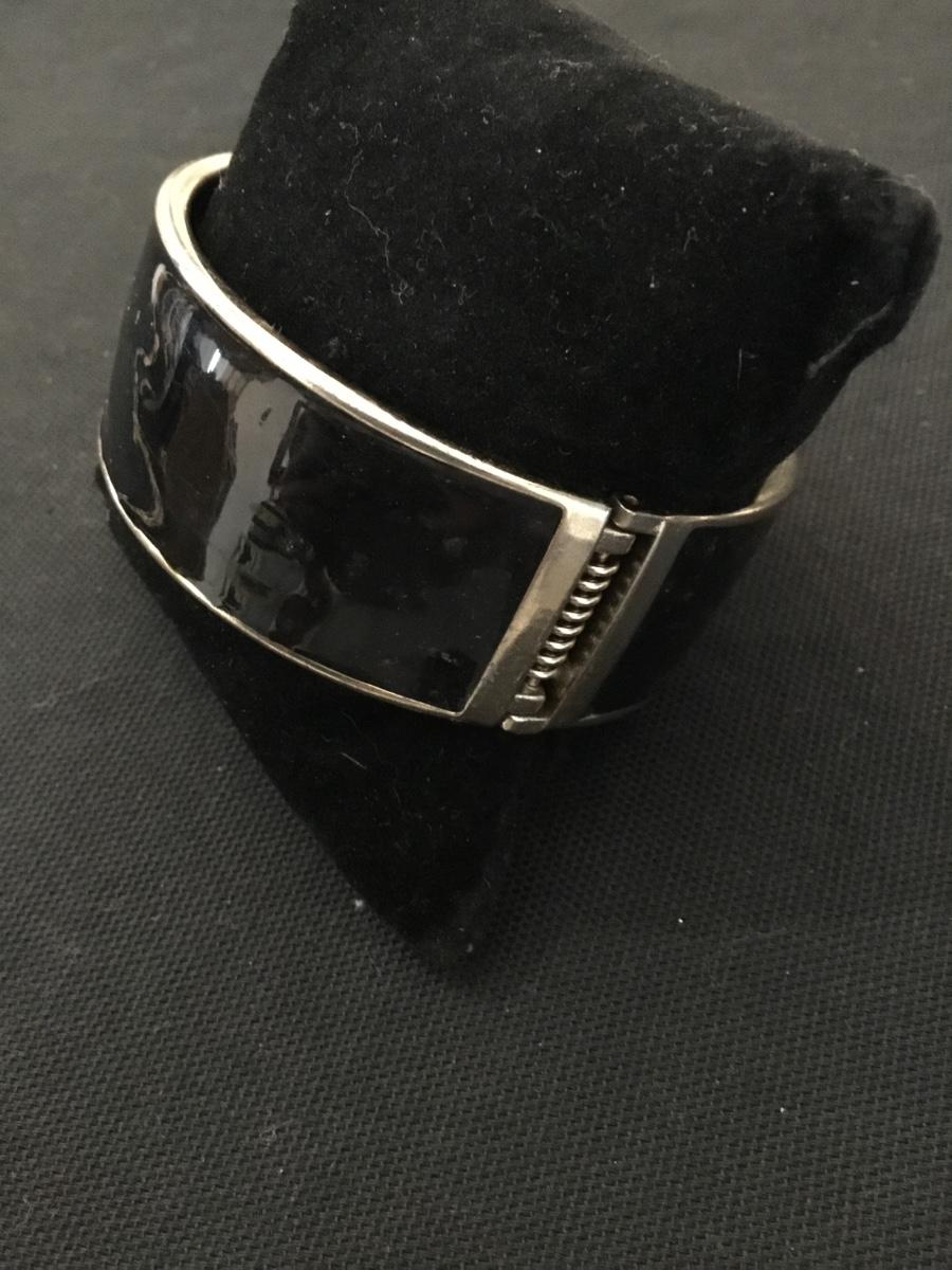 Vintage mid century, gold, toned, black enameled, hinged bracelet
