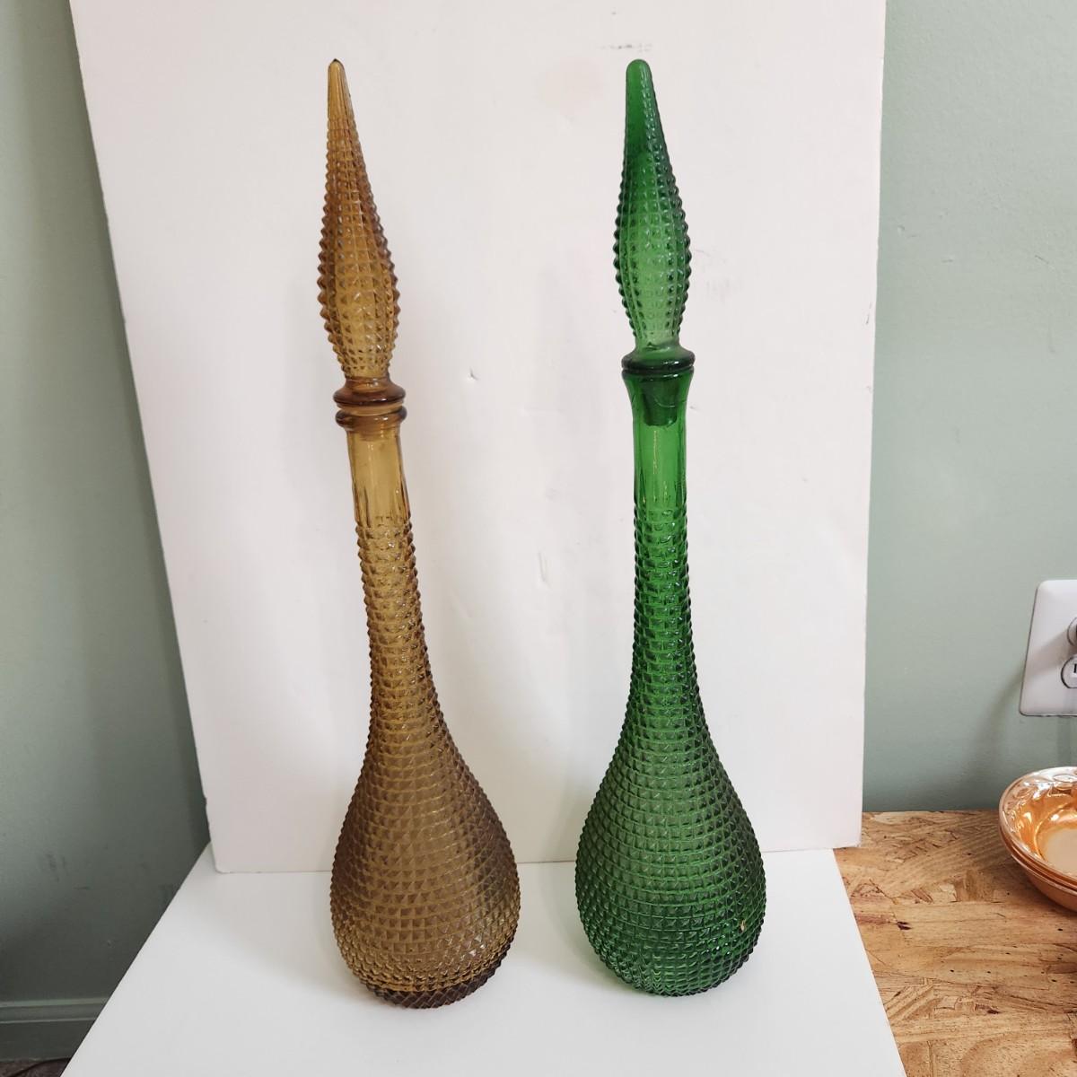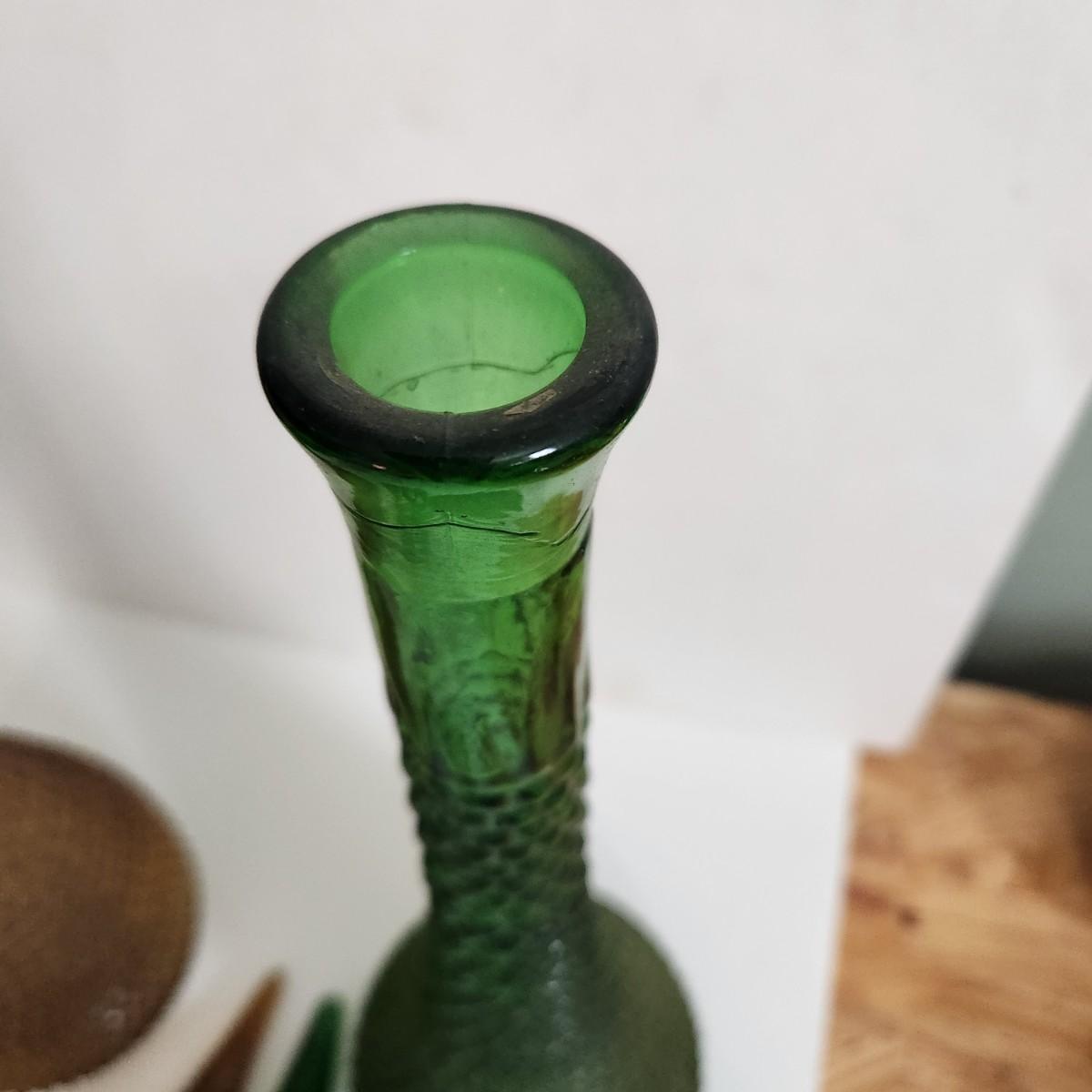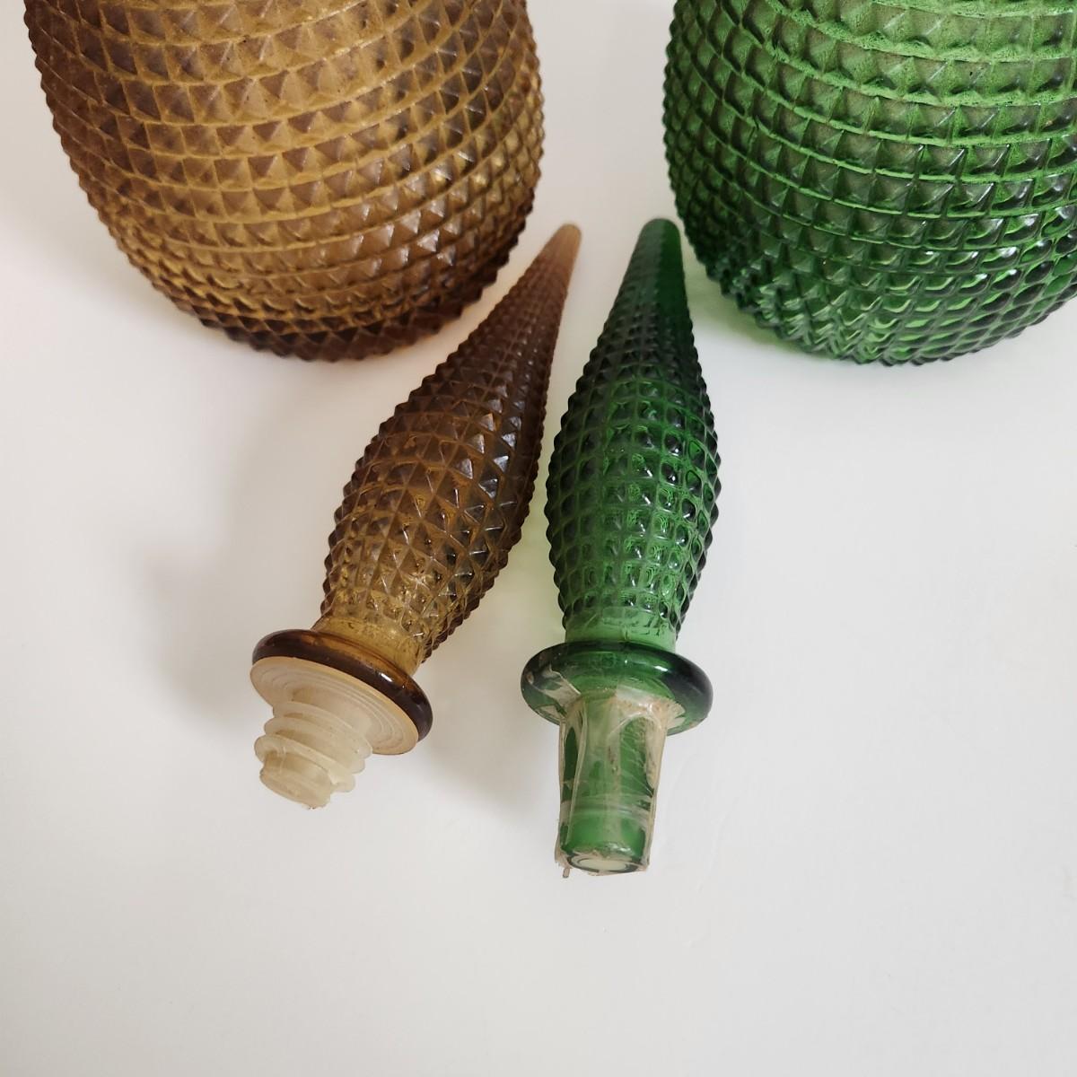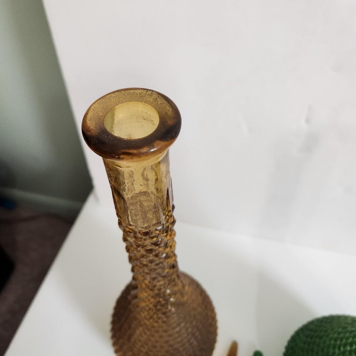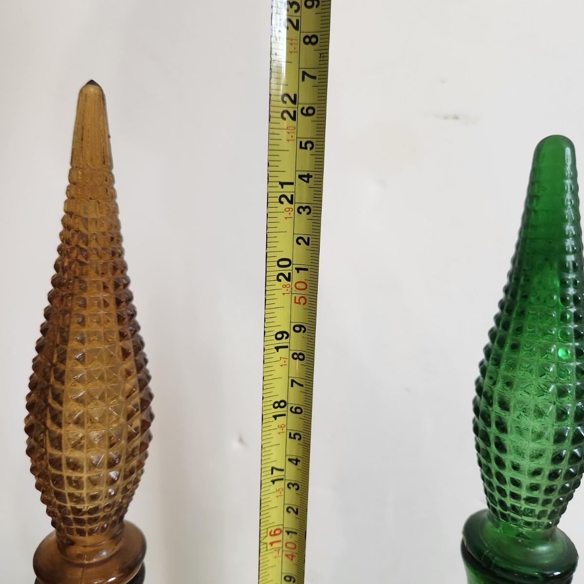 Vintage Mid Century Hobnail Art Glass Empoli Green Amber 22"