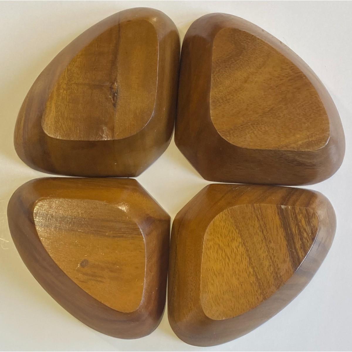 You get one set of four wooden bowls with a round wooden tray that is in good condition with minor surface wear. The tray is 12.25" in diameter. The bowls are approximately 1.75" deep and measure roughly 7 1/8" wide at their widest by 5 1/8". Please see all pictures. Thank you for looking. As a reminder, if this is a lot, we do not break up lots. Also, all items are prepacked, so each item is sent individually. Any item that qualifies for media mail and weighs over one pound will be shipped via media mail. Otherwise, the item will be shipped USPS ground advantage, or UPS ground. Shipping for this item is $12.00. Items ship within two days after payment is received. Item SKU is OTH3163.