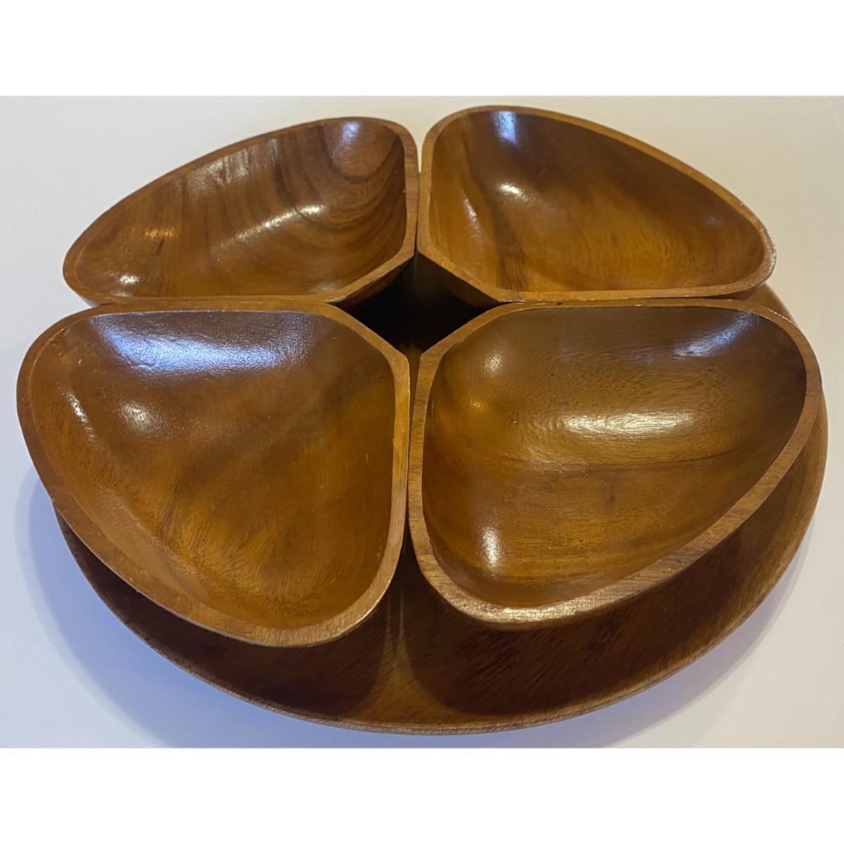 Vintage Mid Century Modern 4 Connecting Wooden Bowls and Round Tray Set MCM