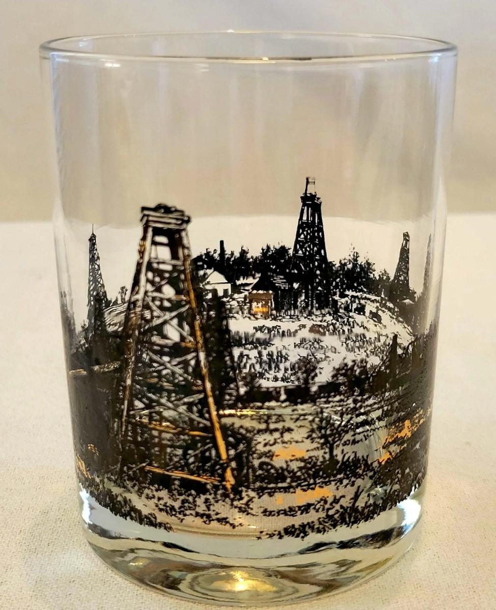 Vintage Mid Century Modern Black & Gold Oil Derrick Glasses