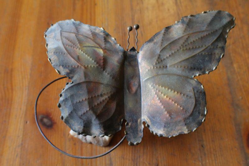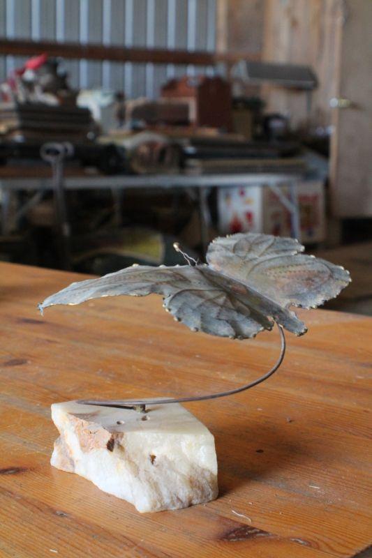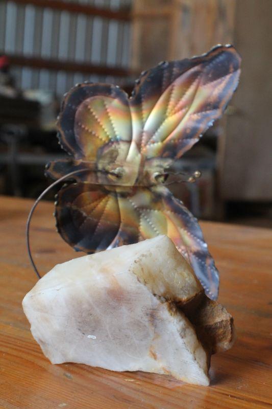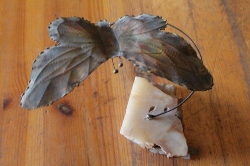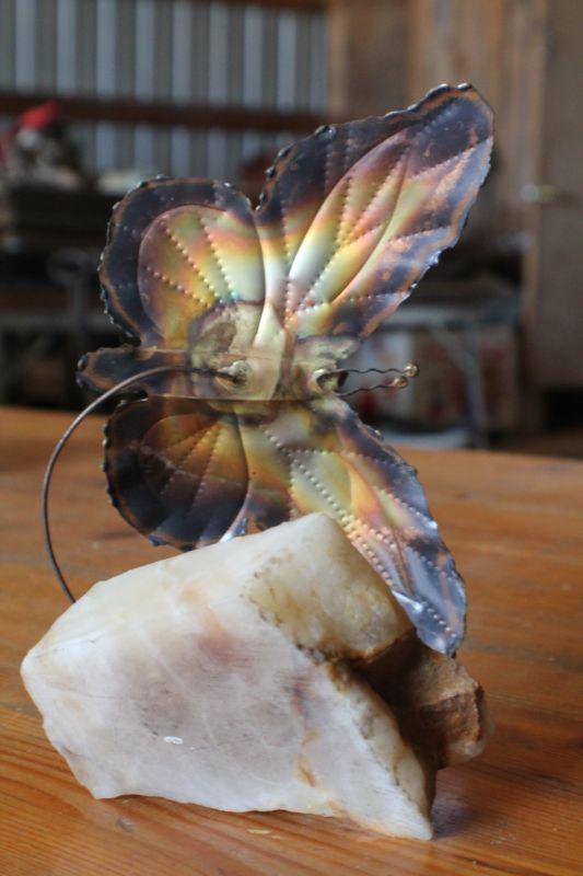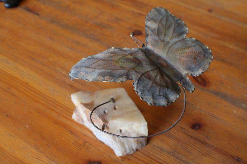 Lot #234: Vintage Mid Century Modern Brass Butterfly Kinetic Sculpture w/ Rock Base