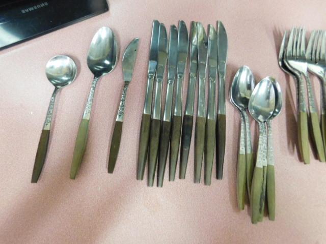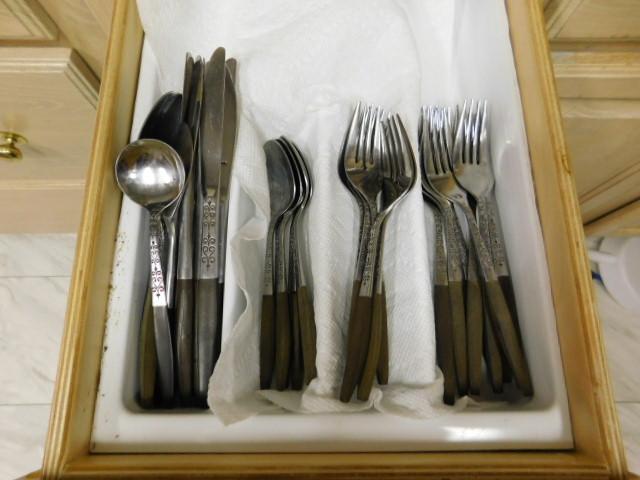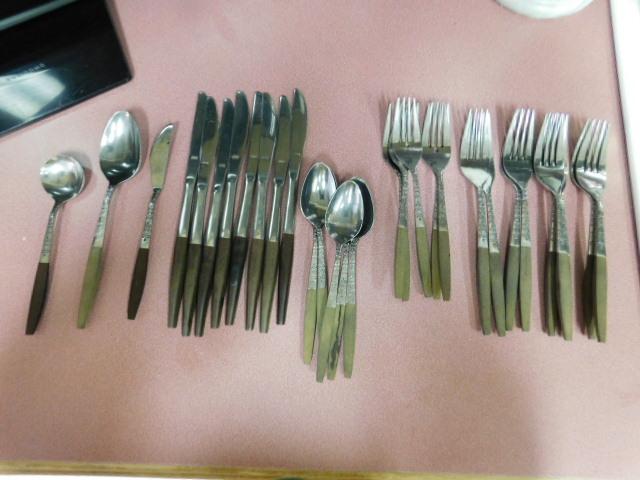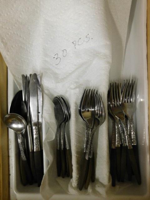 Vintage Mid Century Modern Japanese Interpur Wood Handle Flatware 30 Pcs some handles are different shade of brown