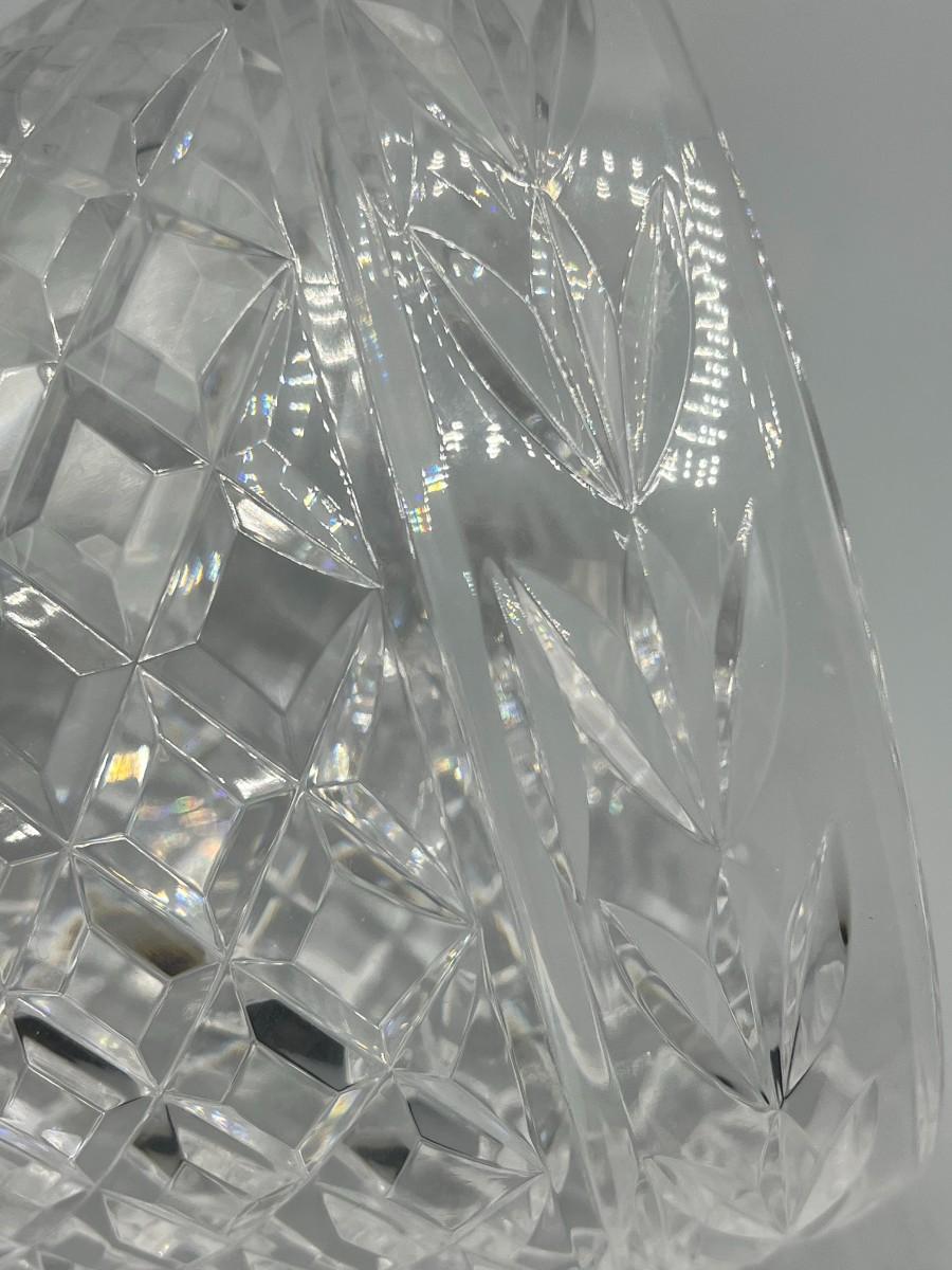 Vintage Mid Century Modern Laurel Leaf Pattern Crystal Cut Lead Glass Ice Bowl Decor