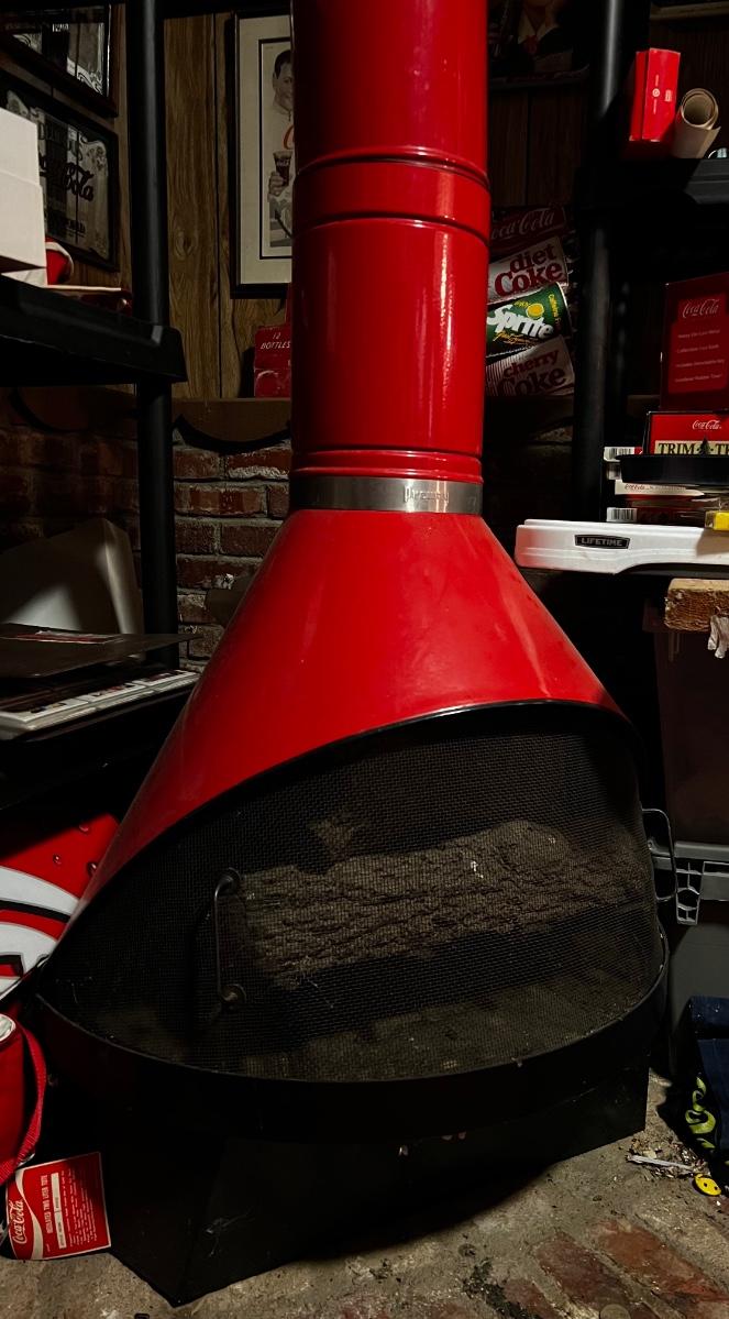 Vintage Mid Century Modern Red Porcelain Finish Preway Fireplace. Is set up with Gas Log but could be used as Wood Burning.