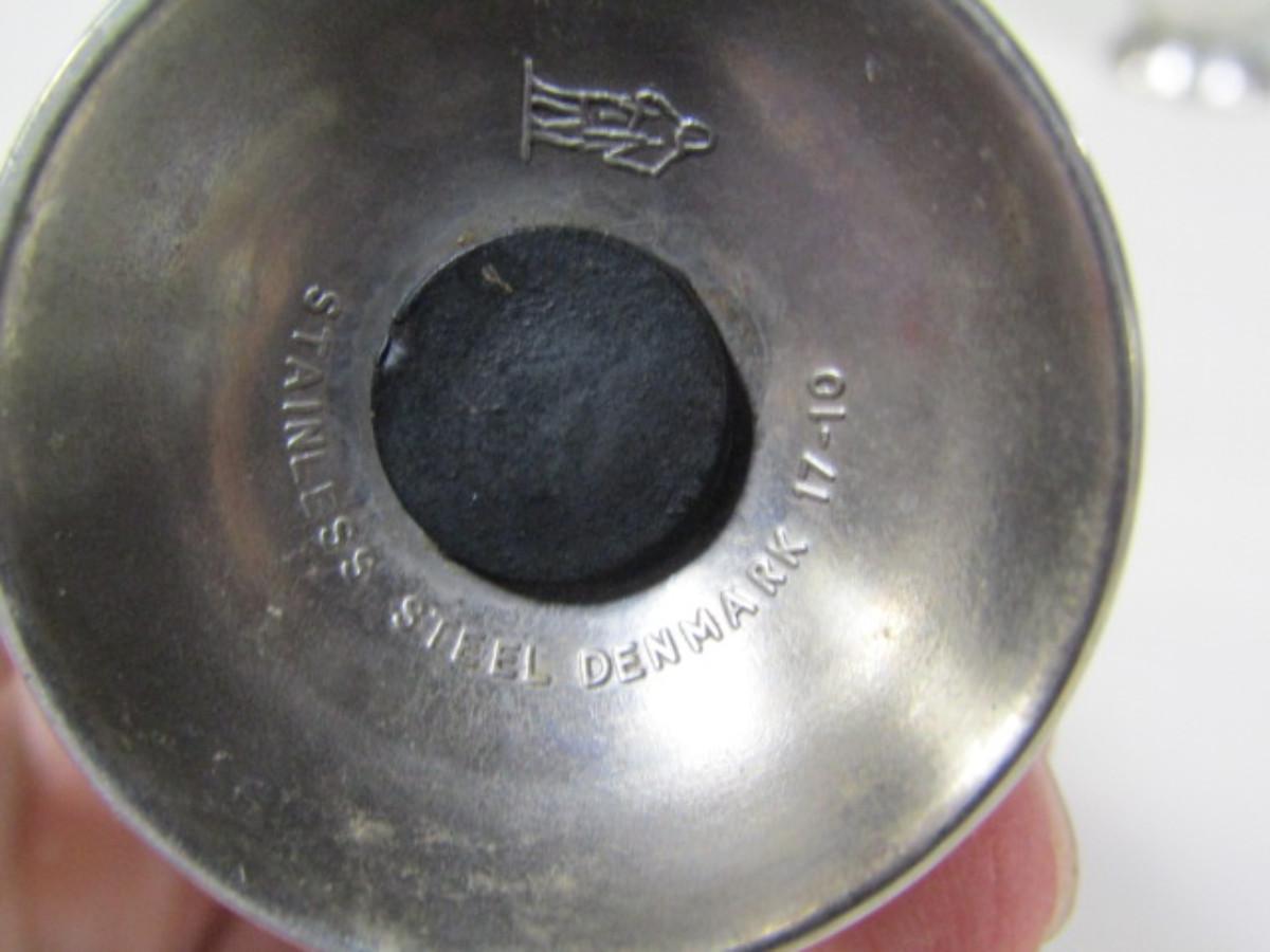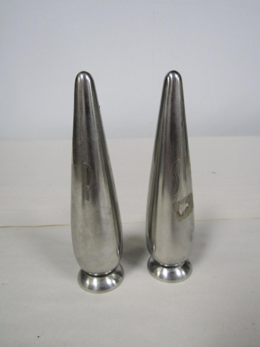 Vintage Mid Century Modern Style Salt and Pepper Shakers (Denmark). Please see all pictures- some oxidation on salt shaker.