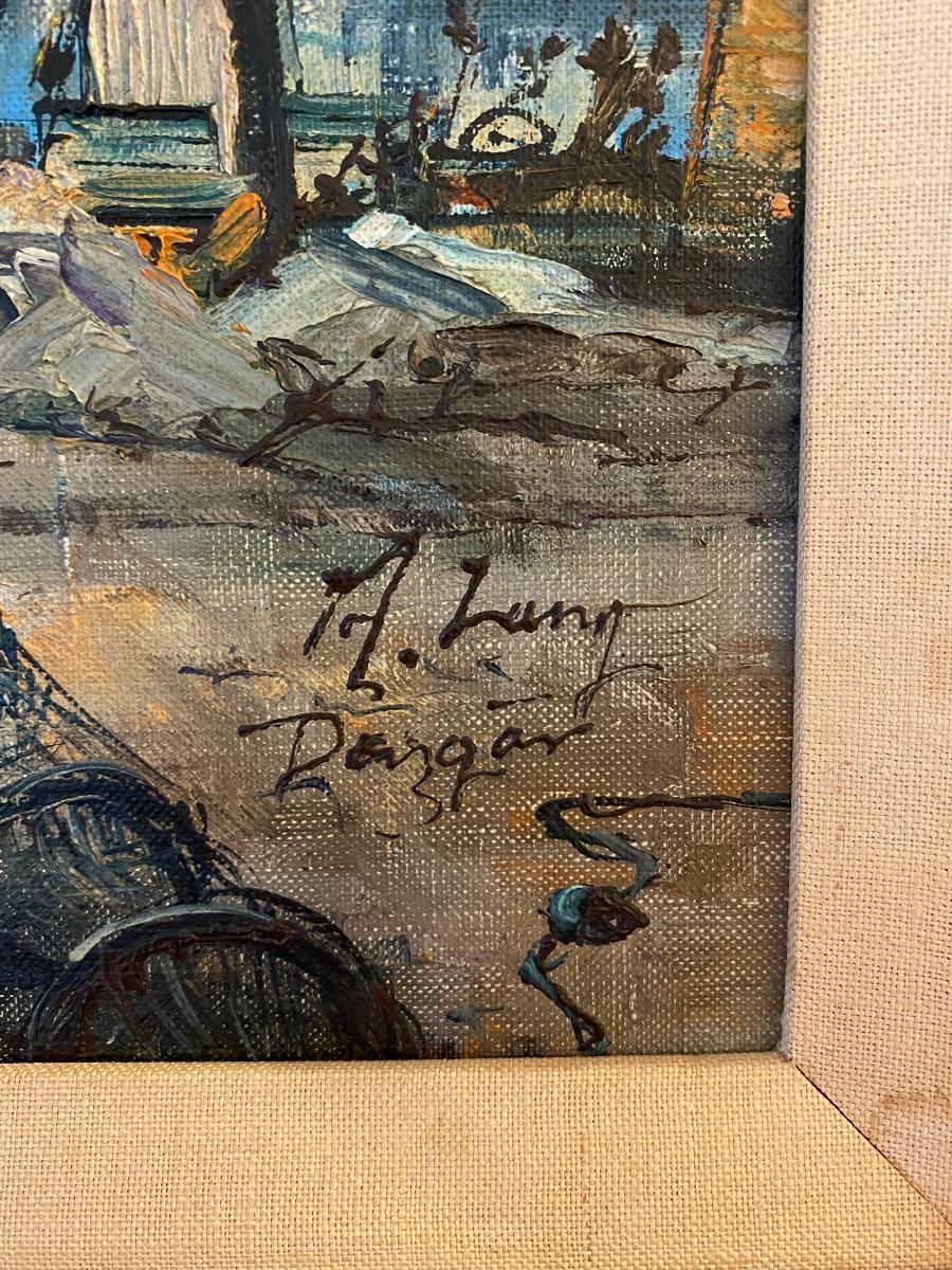 Vintage Mid Century Nautical Seaside Fishing Village Framed Oil Painting
