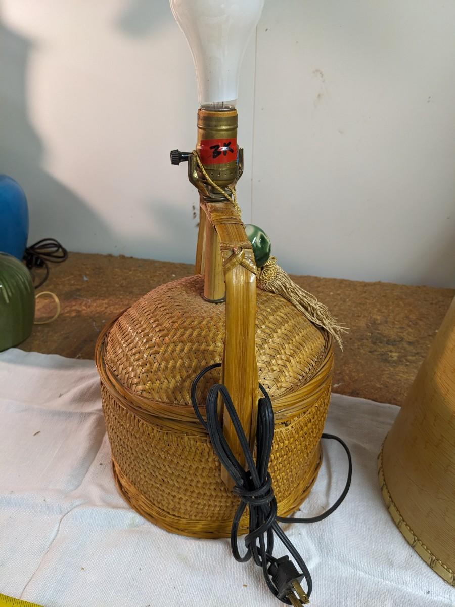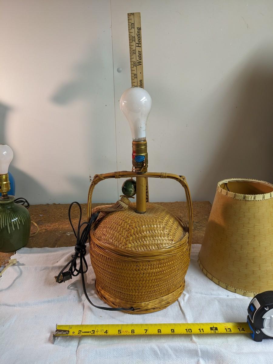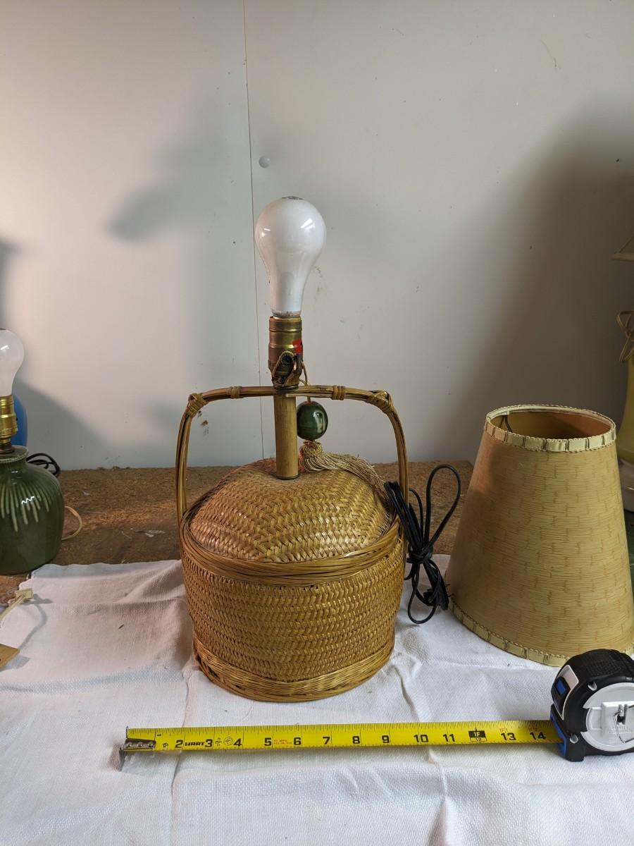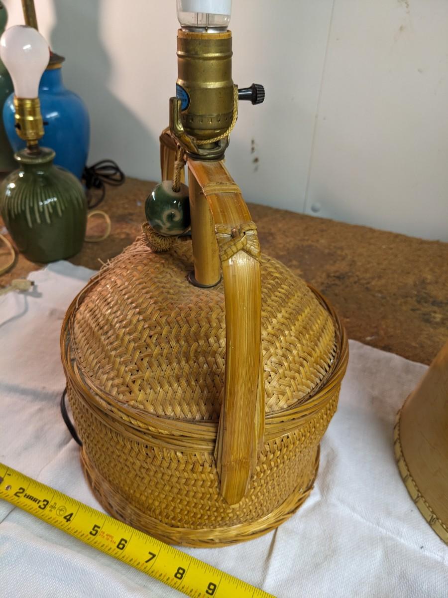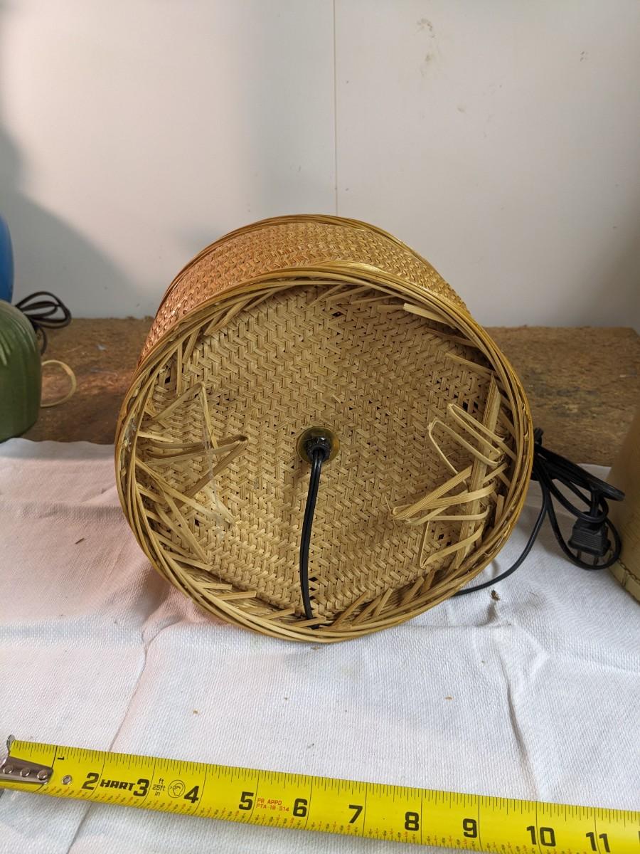 Vintage Mid Century Rattan Wicker Basket Table Lamp