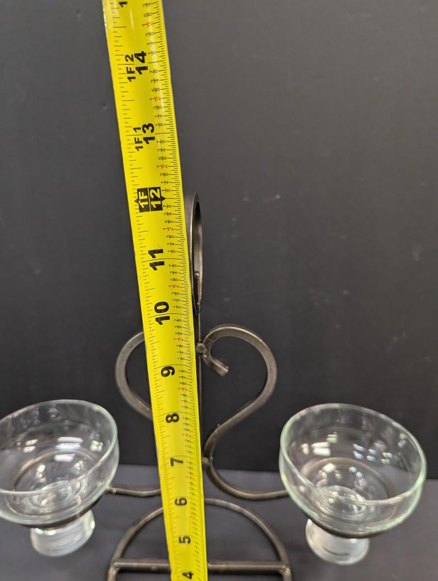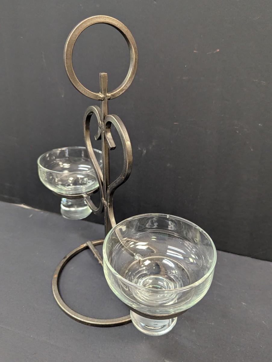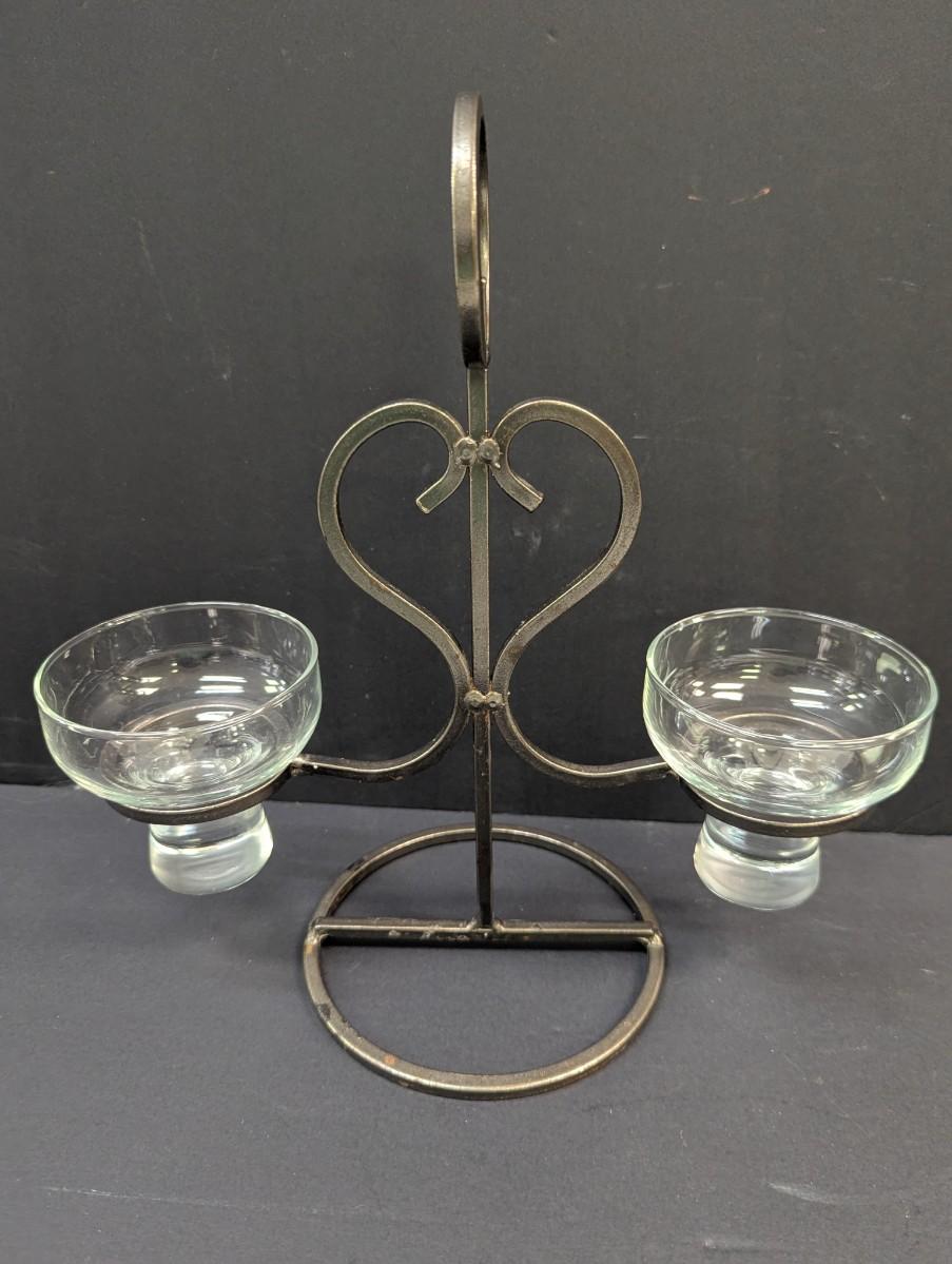 Vintage Mid Century Scandi Modern Danish Iron & Glass Candle Holder
