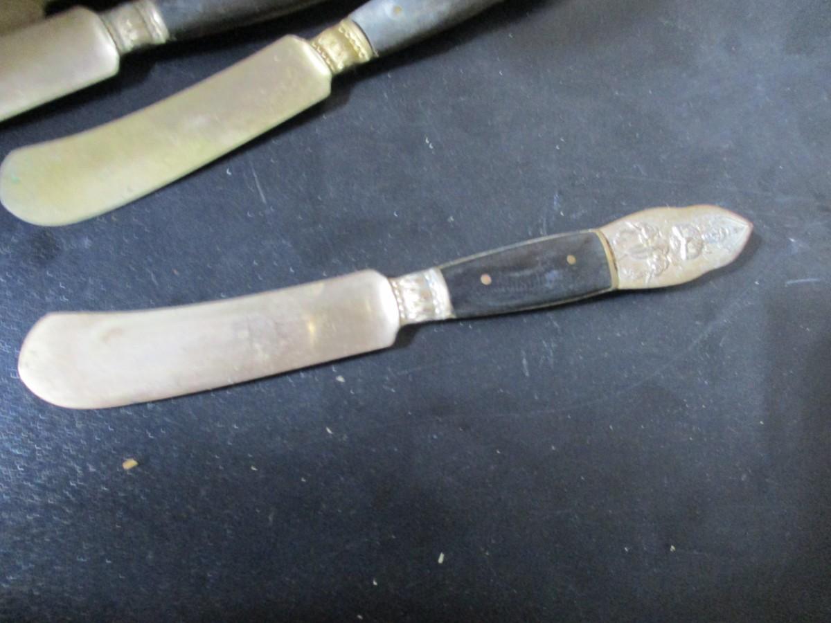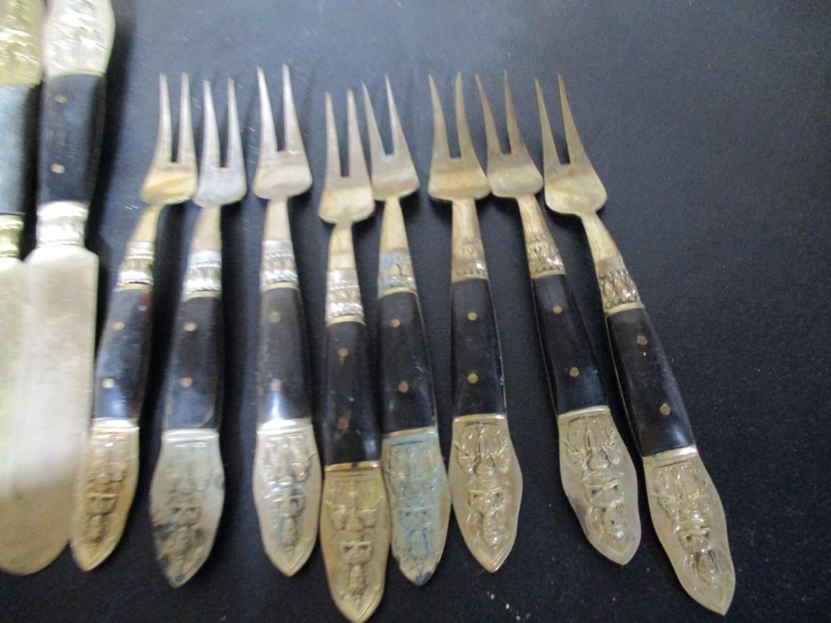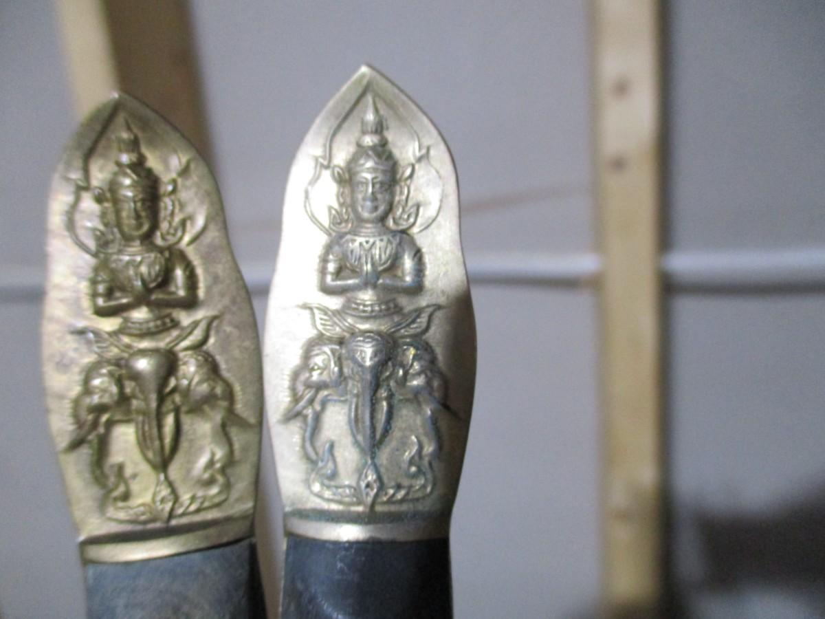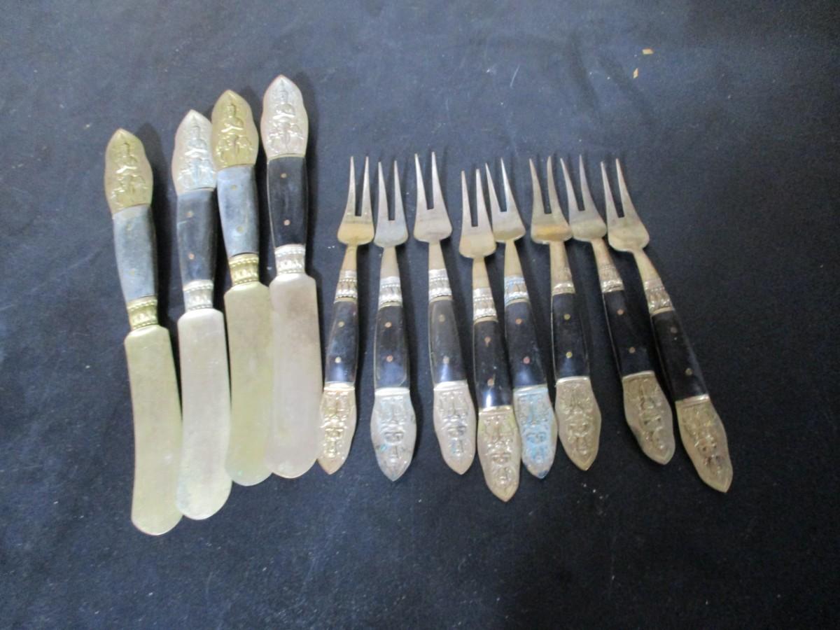 Vintage Mid Century SIAM Thailand Wooden Appetizer Flatware Brass