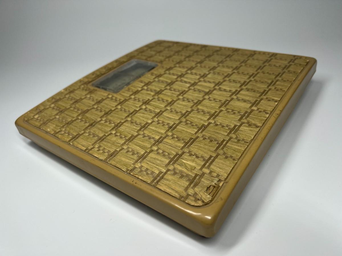 Vintage Mid Century Tiki Style Metal Woven Counselor Bathroom Scale