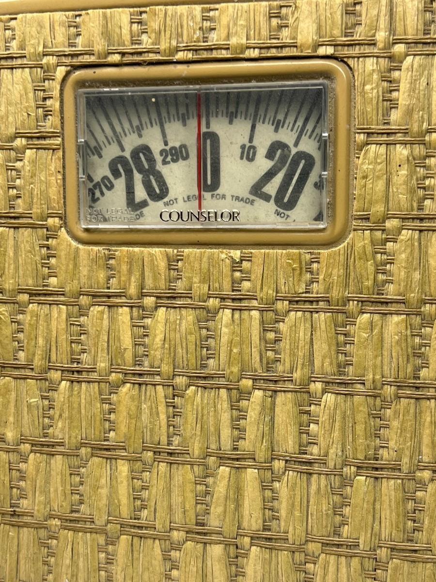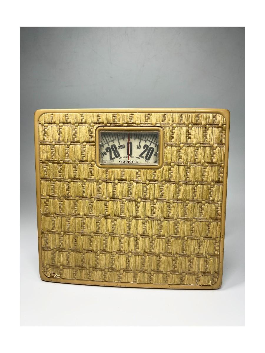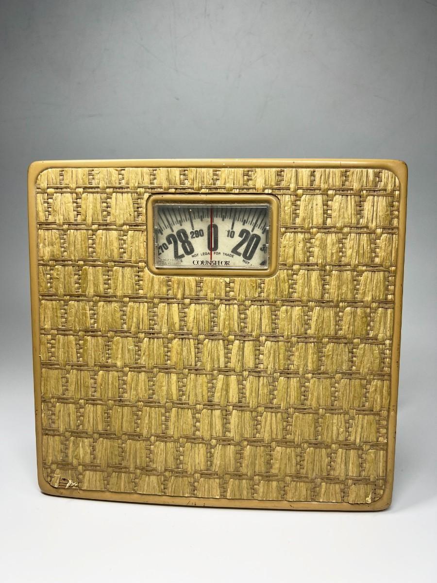 Vintage Mid Century Tiki Style Metal Woven Counselor Bathroom Scale