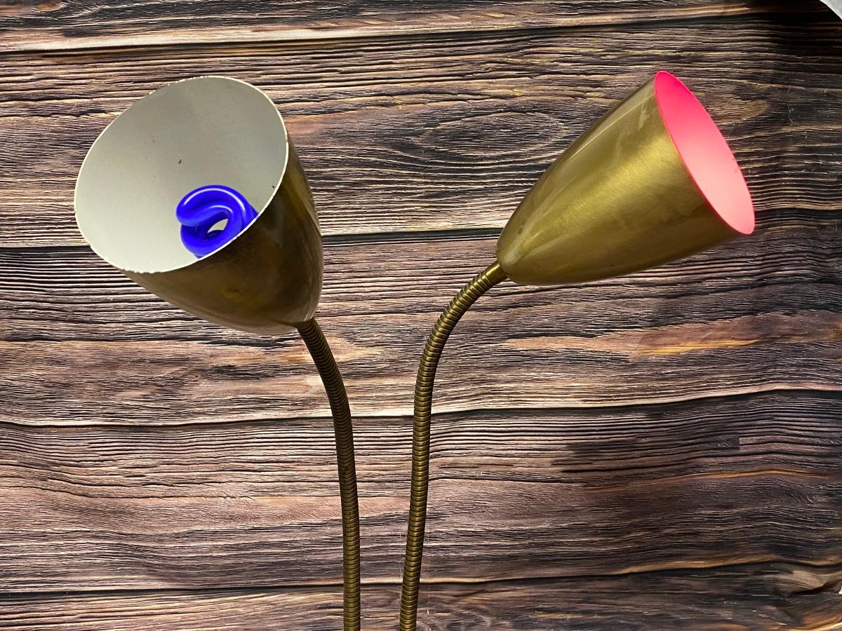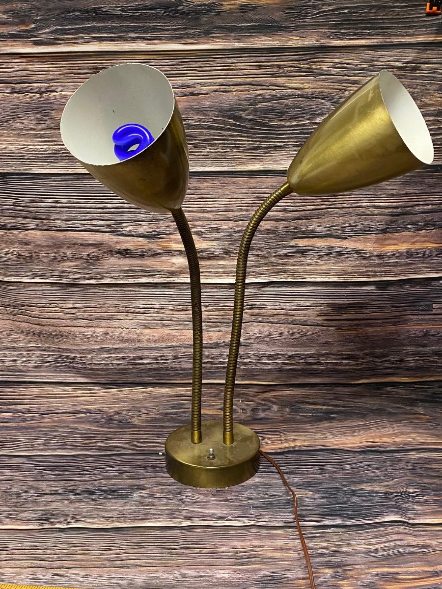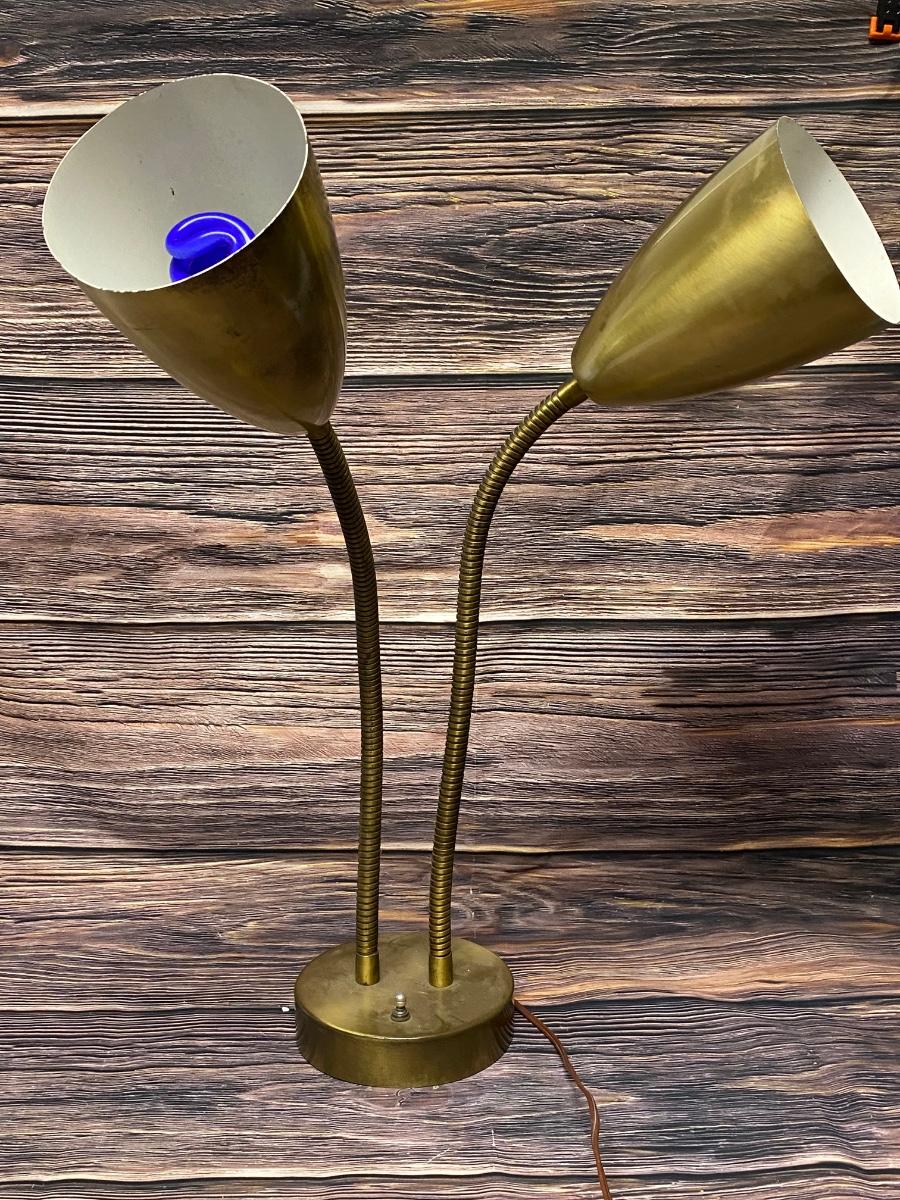 Vintage Underwriters Laboratories Inc. Two Arm Portable Lamp, there is some light vintage wear to the lamp, but is in overall good working condition. Check pictures for more details and for sizing.