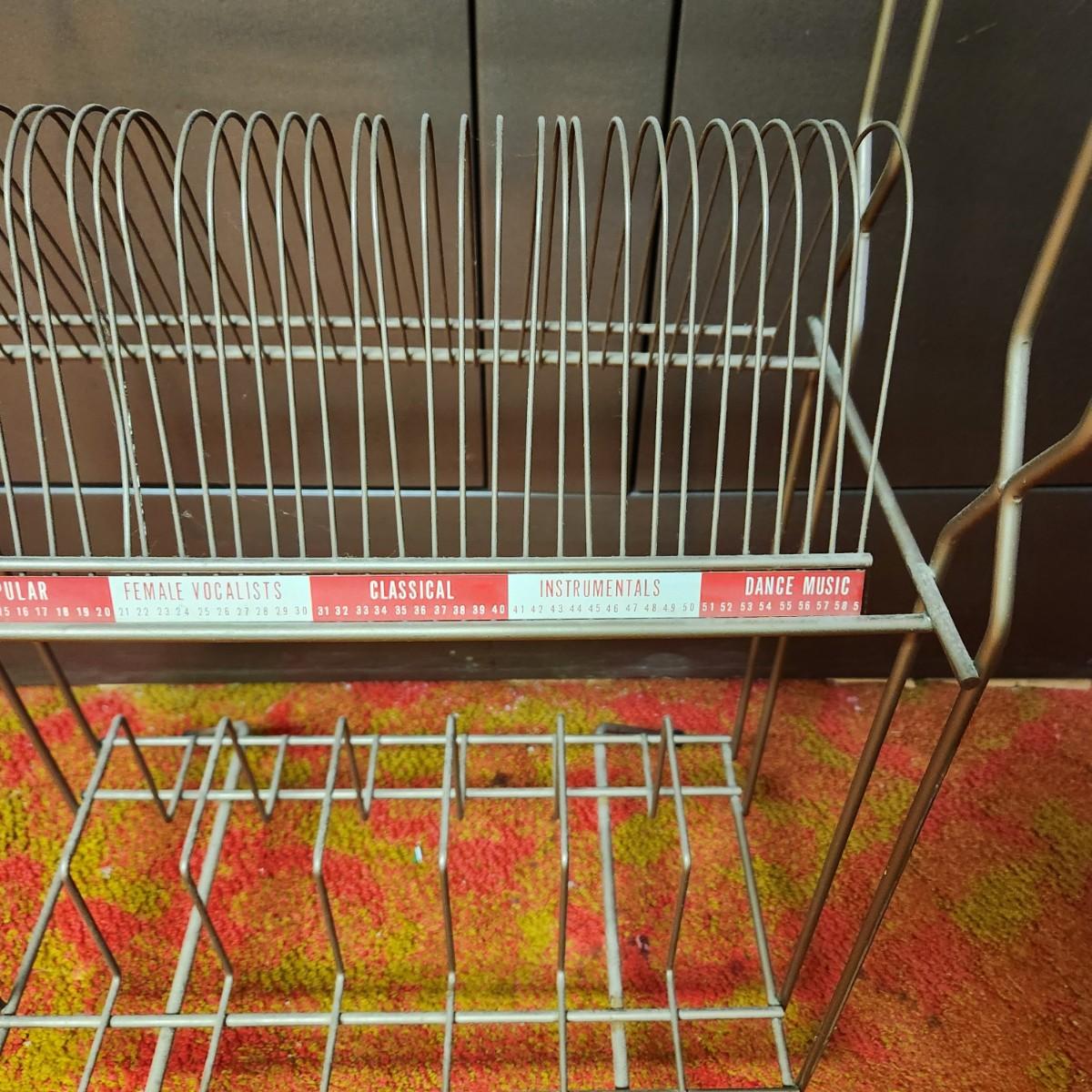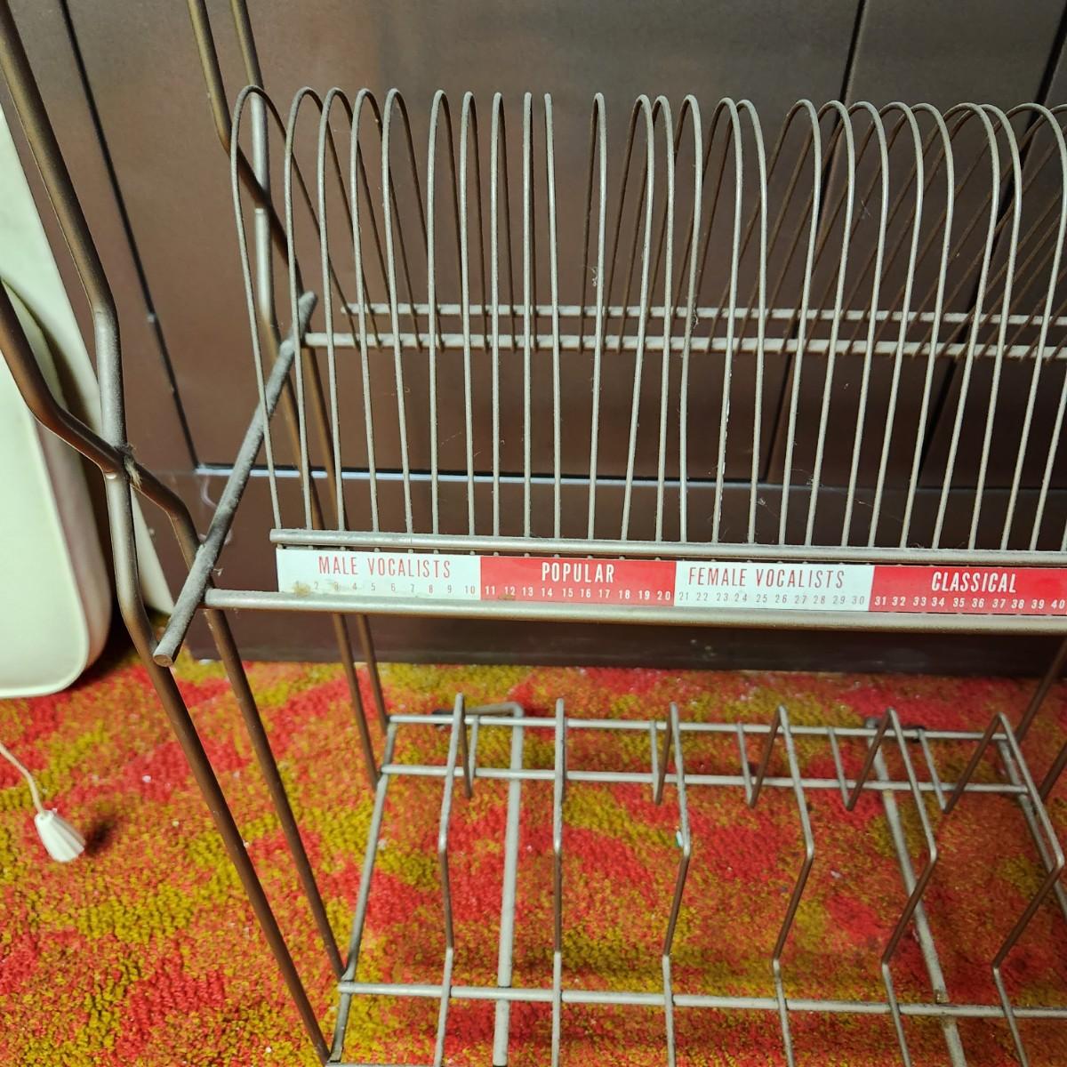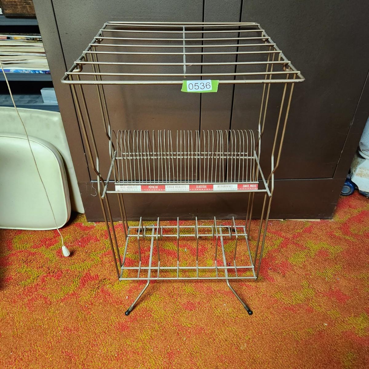 Vintage Mid Century Wire Record Player Stand & Records Albums 45 Holder